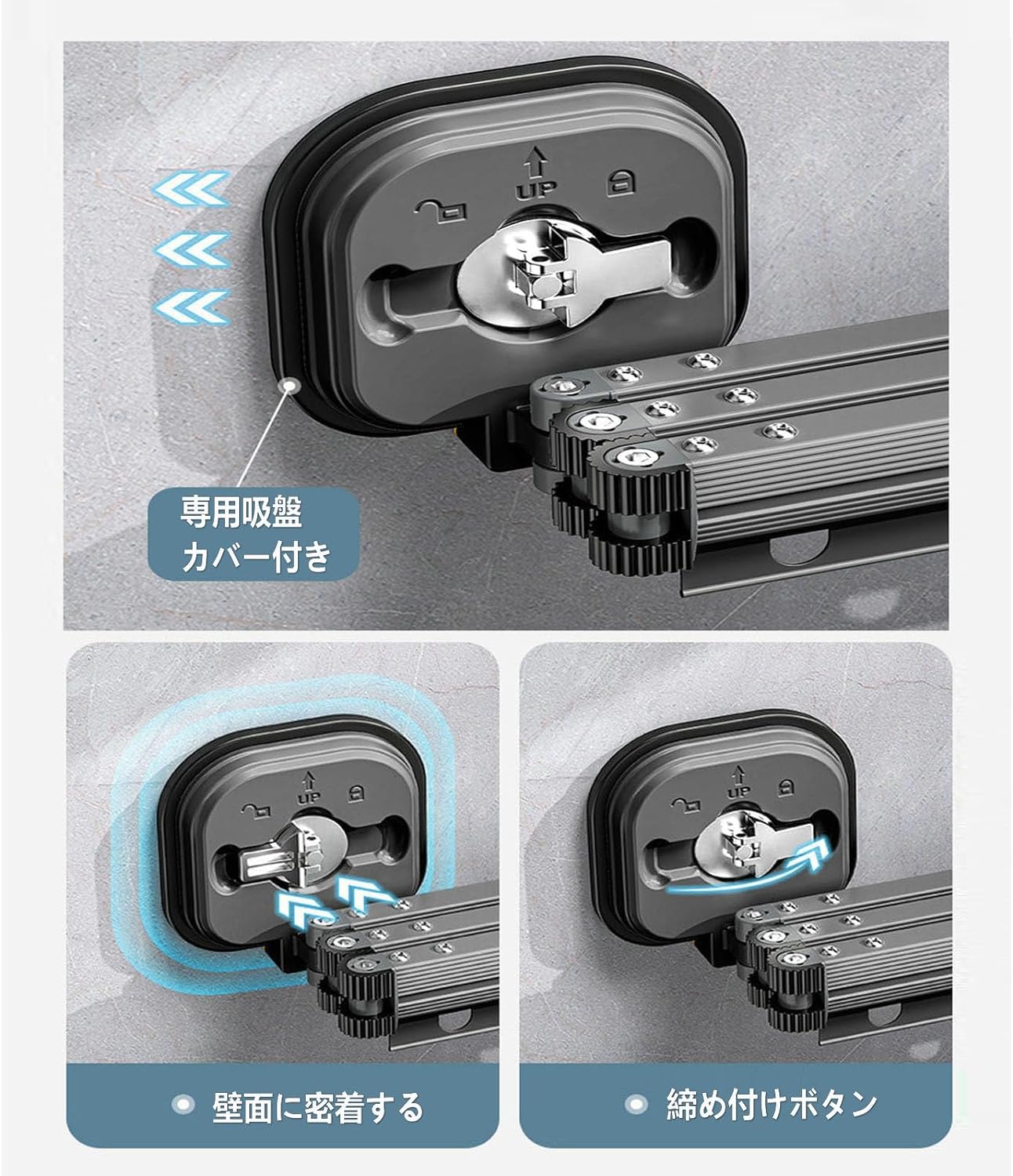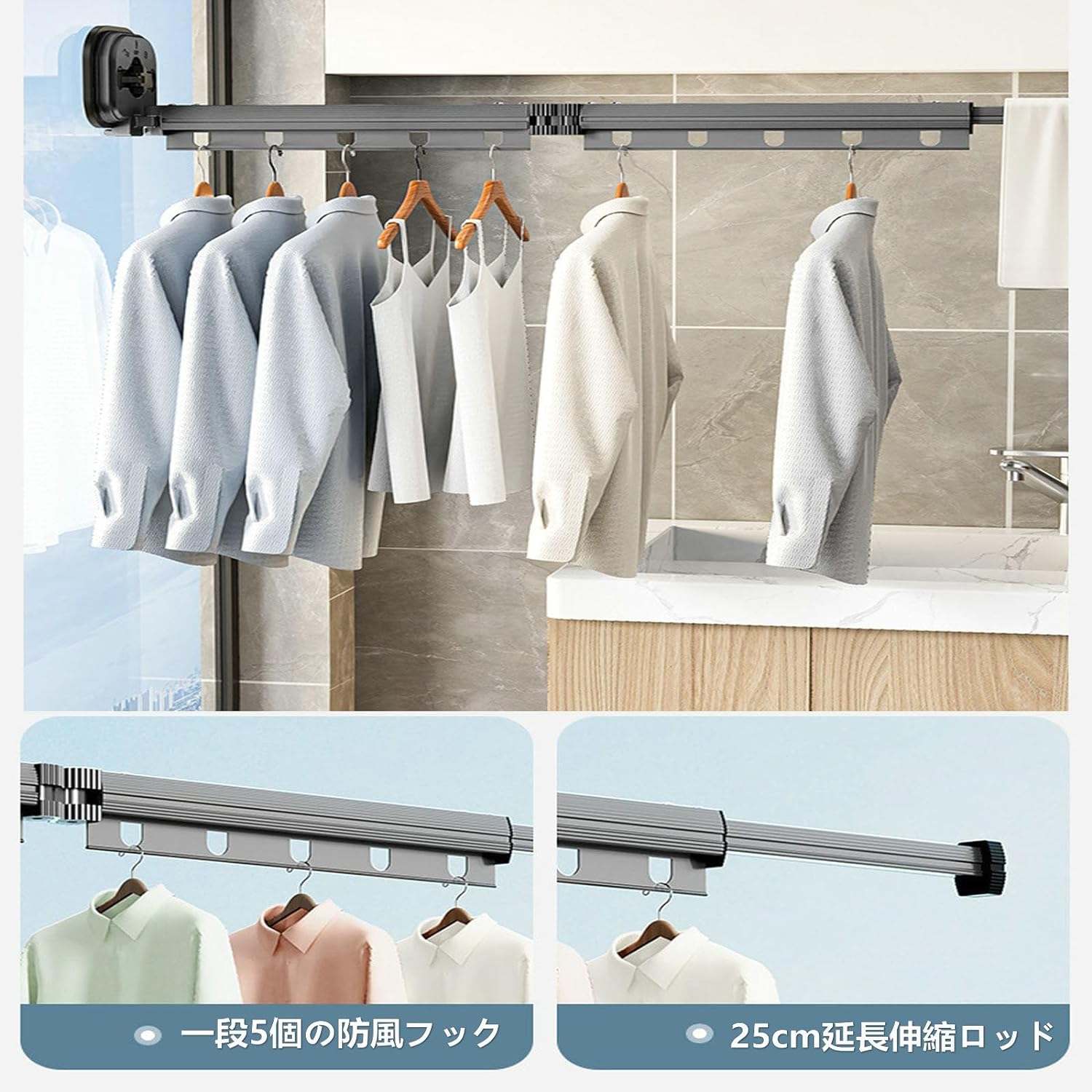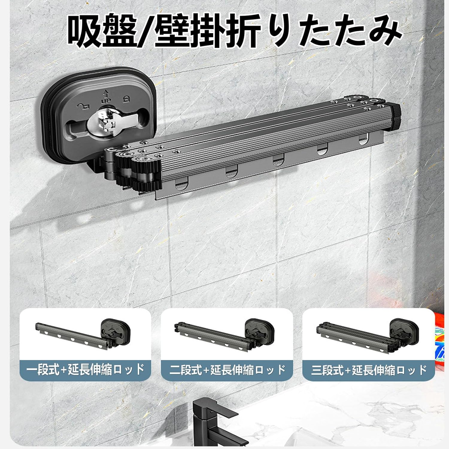吸盤壁掛折りたたみ物干しラック 室内家庭用バルコニー 穴あけ不要 伸縮物干しポール 洗濯物干し アルミニウム合金素材 室内 吸盤乾燥ラック 寝室 バスルーム 壁掛け アルミニウム合金 耐荷 省スペース