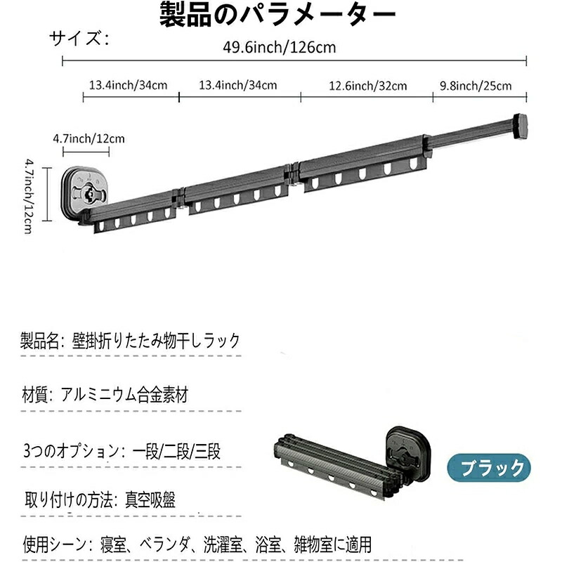 吸盤壁掛折りたたみ物干しラック 室内家 ホワイト ブラック 一段式 二段式 三段式
