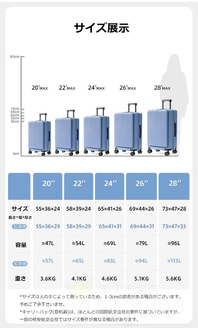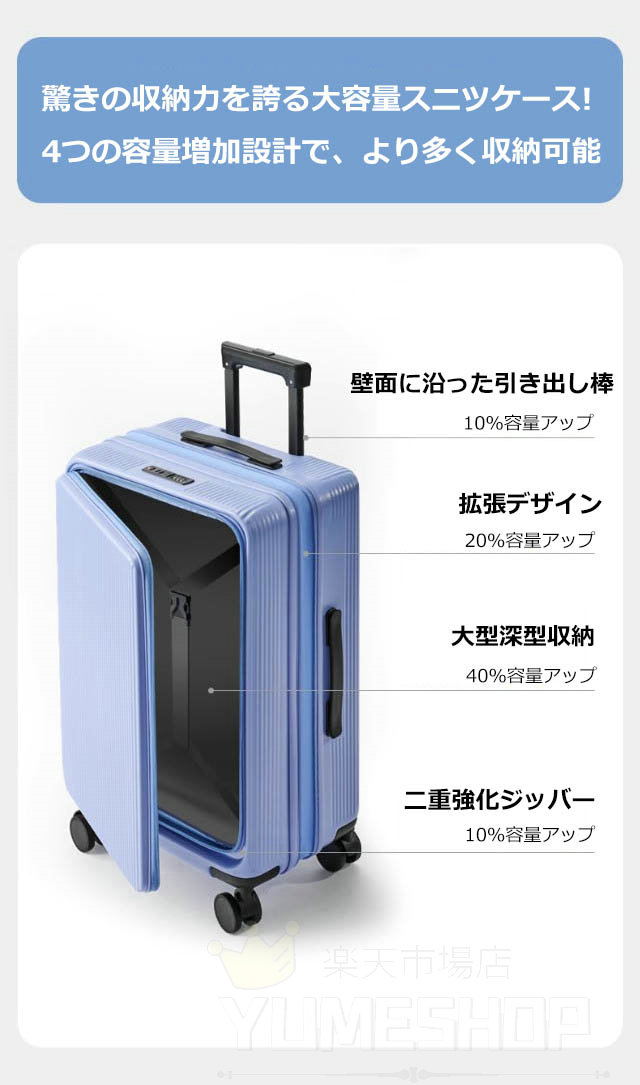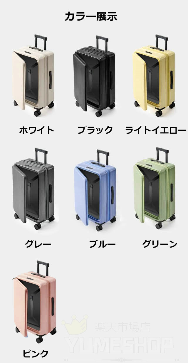 スーツケース 片開き 拡張 キャリーケ バッグ 小物 ブランド雑貨 特集 ホワイト ブラック ライトイエロー グレー ブルー グリーン ピンク 20inch 22inch 24inch 26inch