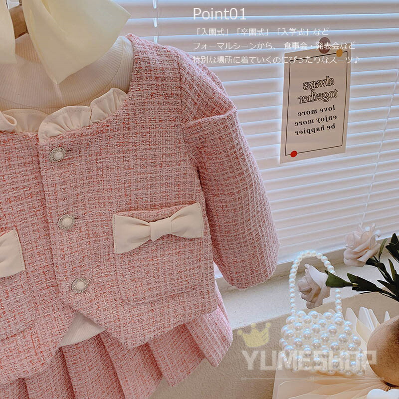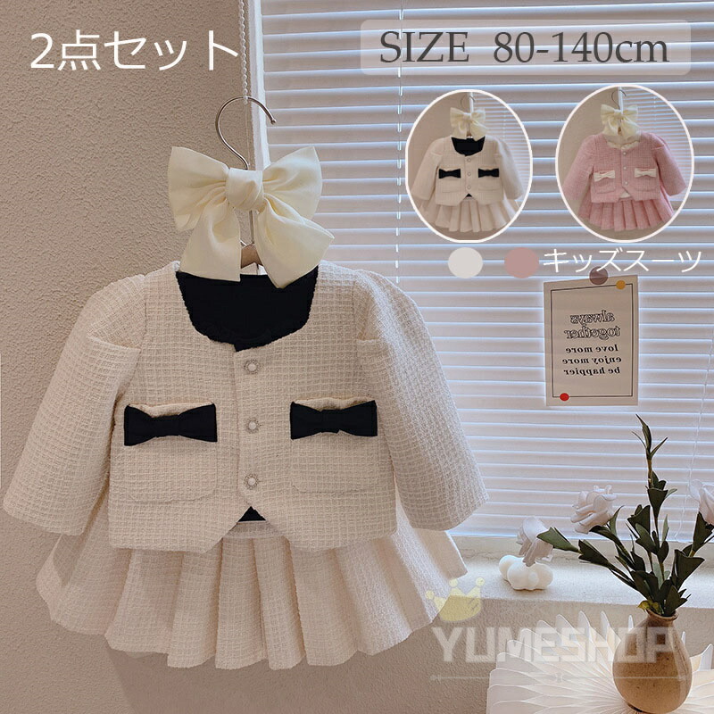 2025 入園式 女の子 ベビー服 ス キッズ スーツ カジュアルセットアップ カジュアルスカートセット 続々入荷中 ホワイト(ジャケット+スカート) ピンク(ジャケット+スカート) 80cm 90cm 100cm 110cm 120cm 130cm 140cm