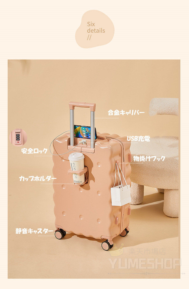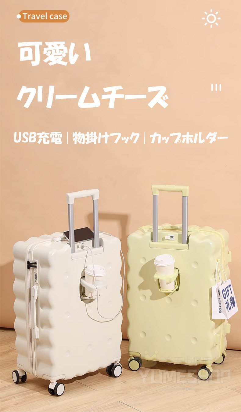 2025新作 スーツケース キャリーバッグ キャリーケース 超軽量 クリームチーズ 大人気 USBポート カップホルダー かわいい 静音 小型 おしゃれ 旅行かばん 入学 出張 ビジネス 研修 旅行