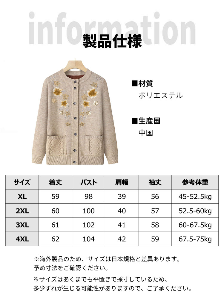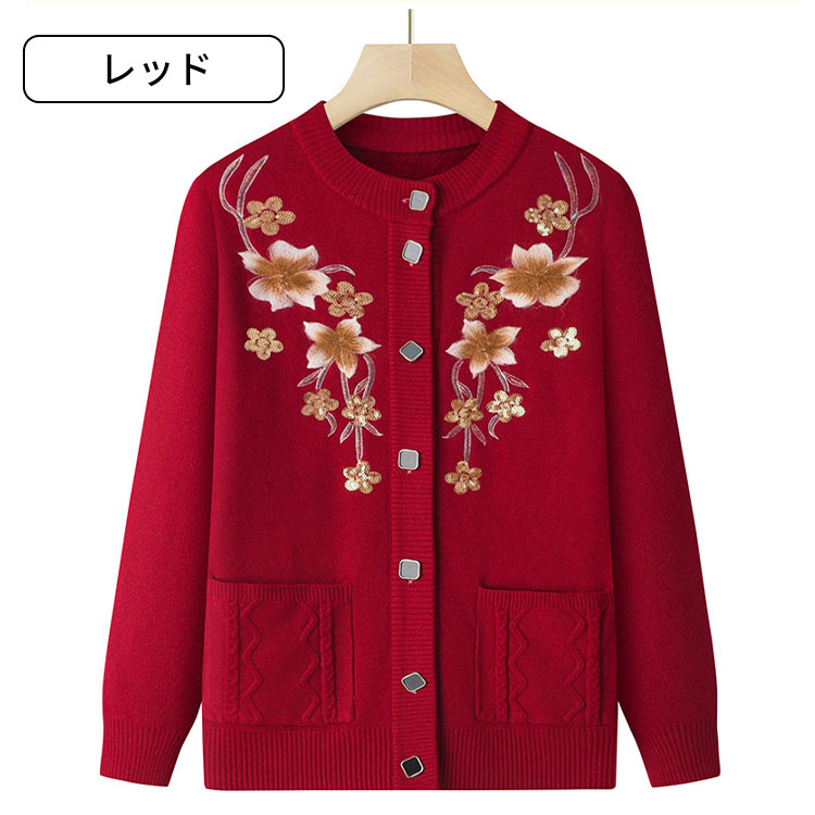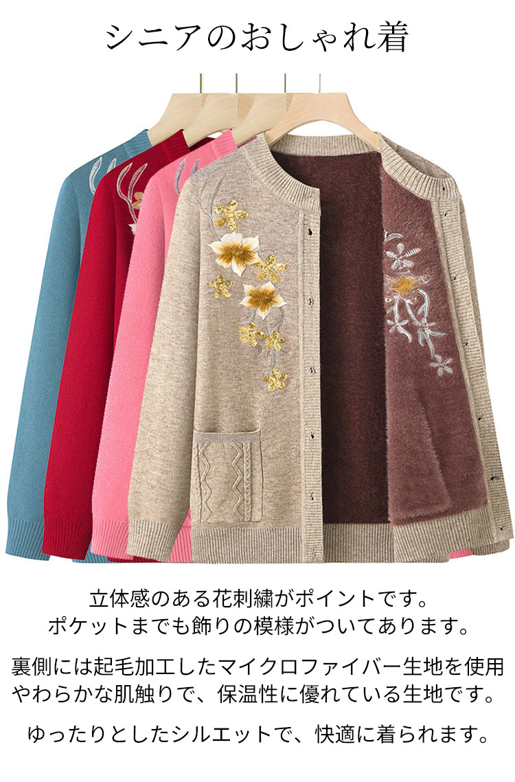 ニットカーディガン おばあちゃん シニ トップス カーディガン ボレロ 続々入荷中 ベージュ レッド ブルー ピンク XL 2XL 3XL 4XL