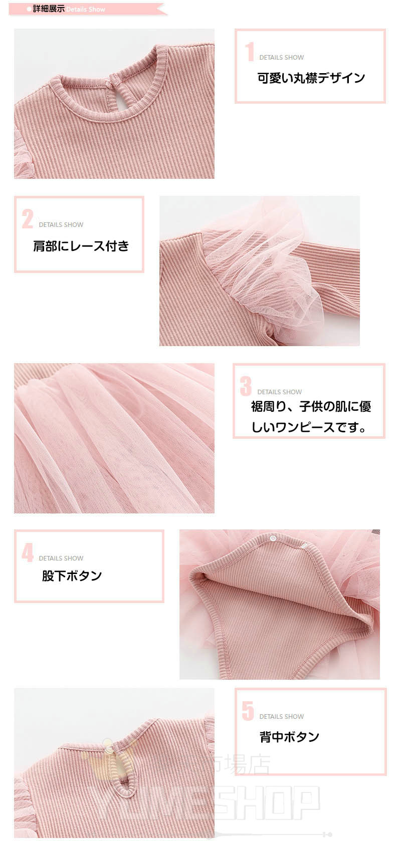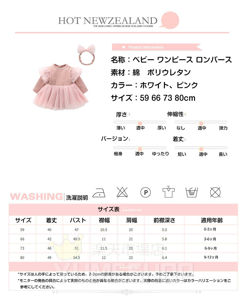 ベビー ワンピース ロンパース 長袖 キッズ ベビー マタニティ 通販 ホワイト ピンク 59cm 66cm 73 cm 80 cm 90cm