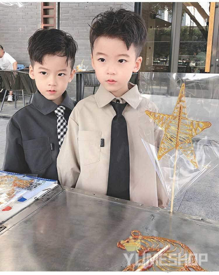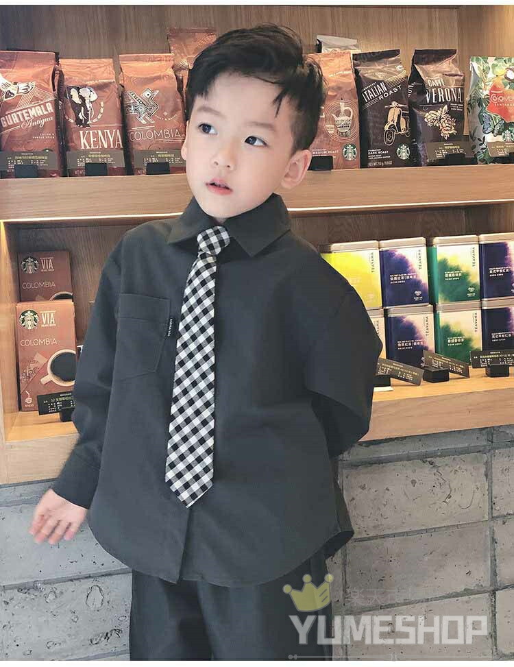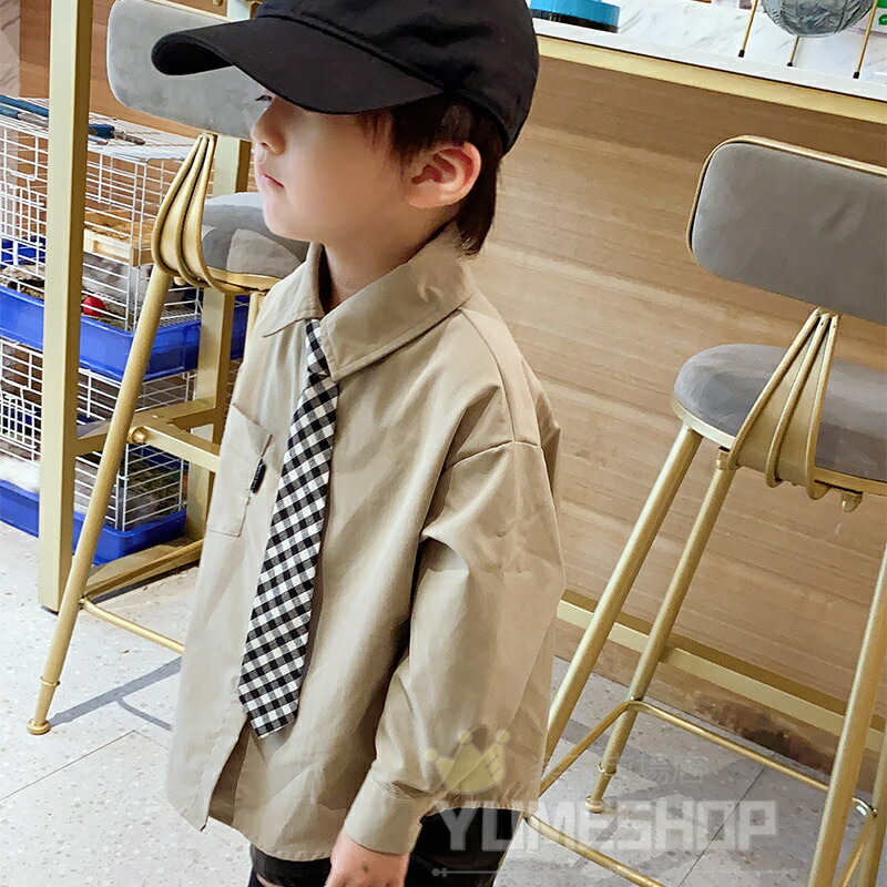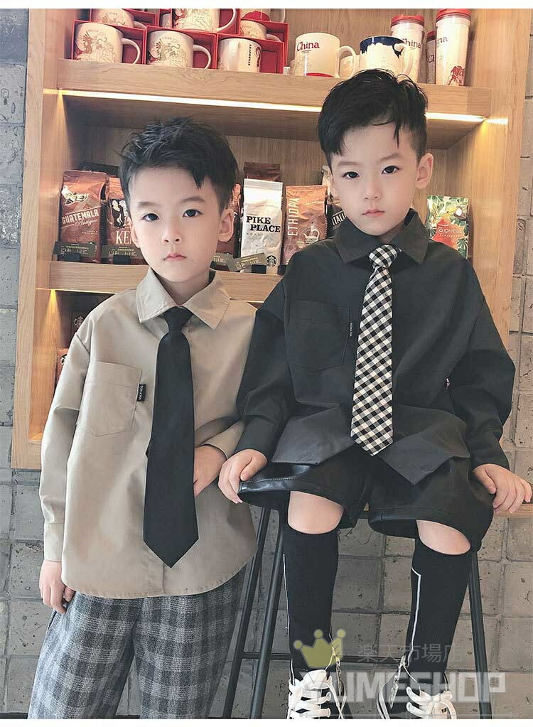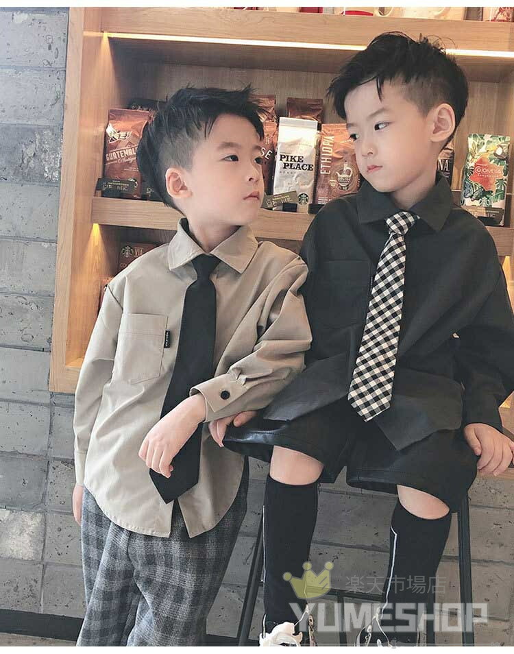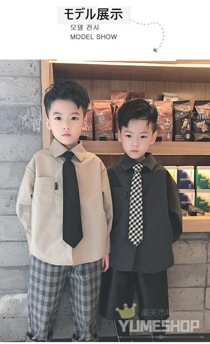 キッズ ワイシャツ 男の子 シャツ ゆ キッズ ベビー マタニティ 新作 カーキシャツ+ブラックネクタイ 黒シャツ+チェック柄ネクタイ カーキシャツ+チェック柄ネクタイ 7#(90cm) 9#(100cm) 11#(110cm) 13#(120cm) 15#(130cm) 21#(160cm)