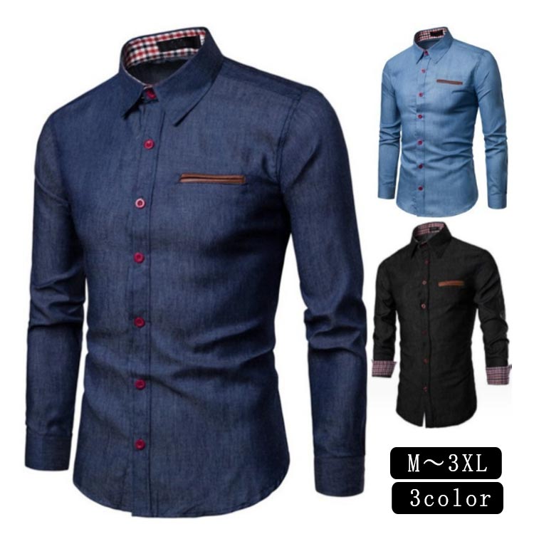 デニムシャツ メンズ 長袖 シャツ デ メンズファッション 早い者勝ち ライトブルー ダークブルー ブラック M L XL 2XL 3XL