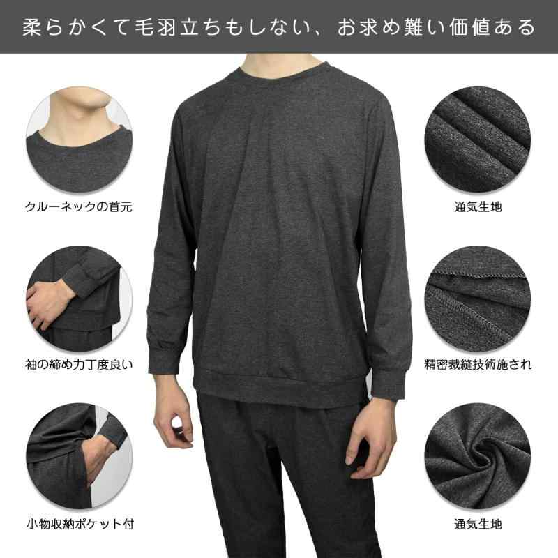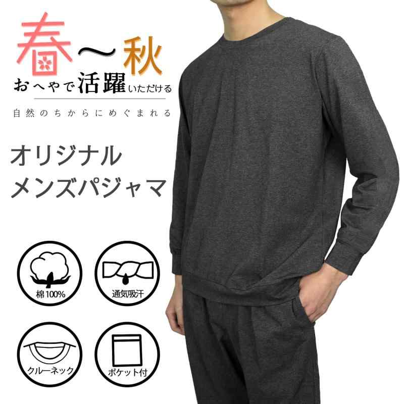 パジャマ メンズ 綿100% 部屋着 M L 2L ダークグレー ブラック
