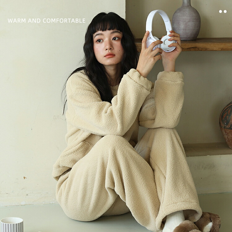 ルームウェア レディース 冬 スウェッ インナー 下着 ナイトウエア 特集 カーキ ベージュ グレー M L