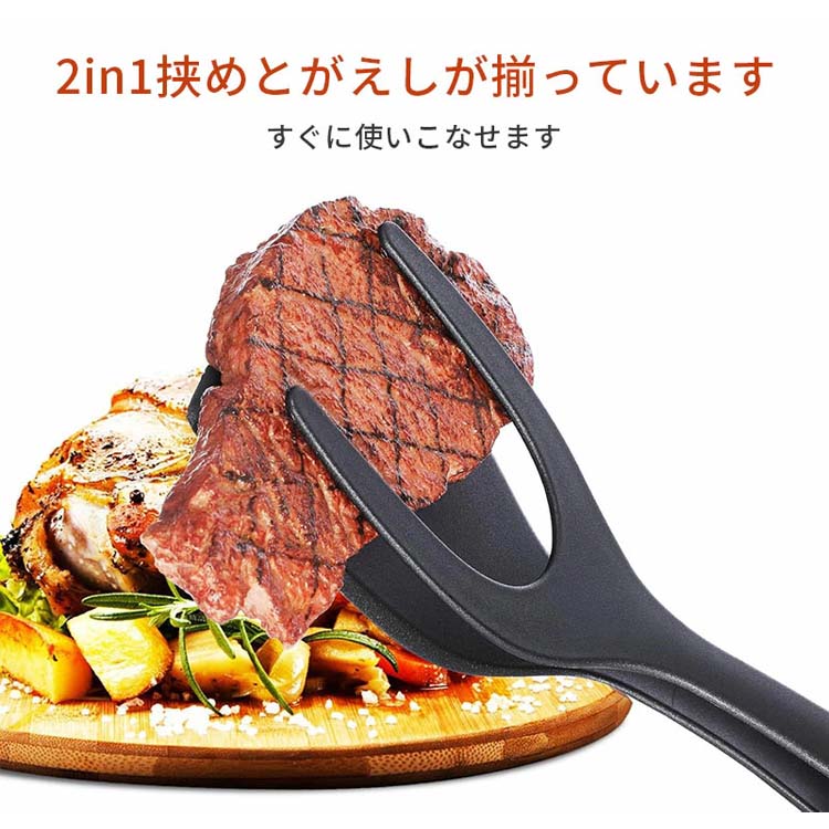 フライ返し ヘラトング 2in1 ヘラ キッチン用品 食器 調理器具 通販 レッド グレー ブラック