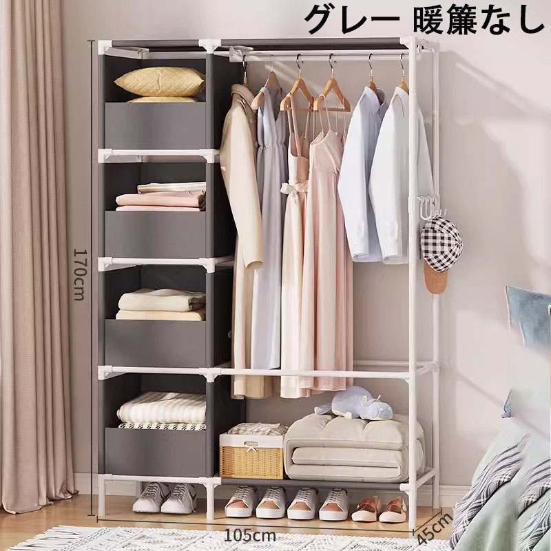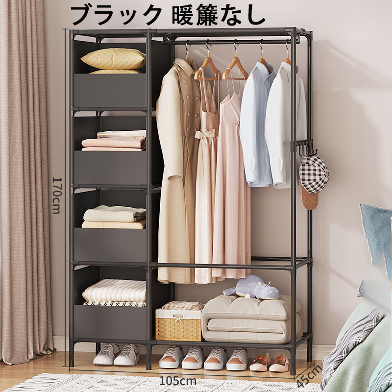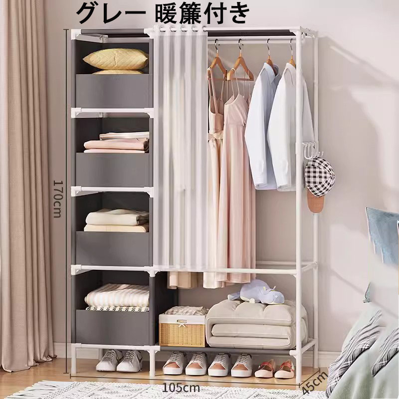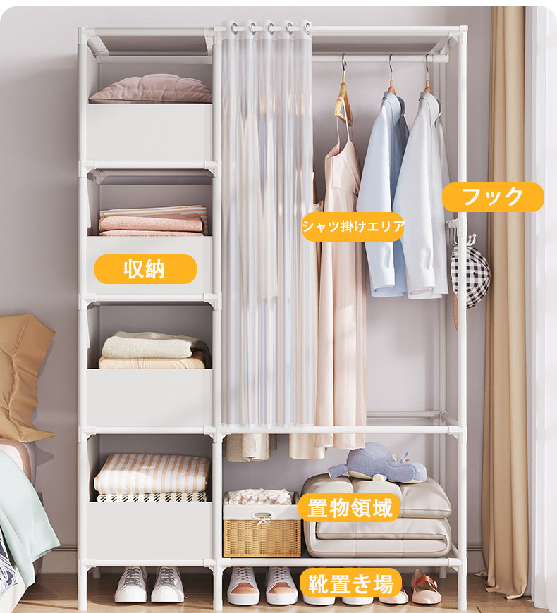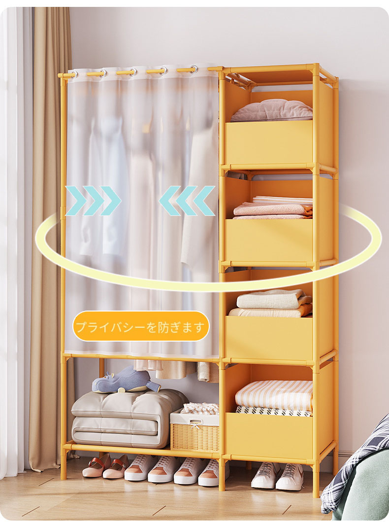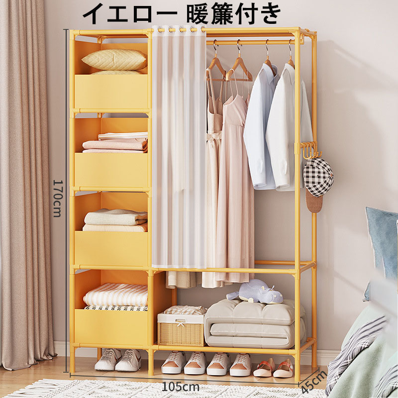 ワードローブ クローゼット ハンガーラ ホワイト ブラック イエロー グレー 暖簾なし 暖簾付き