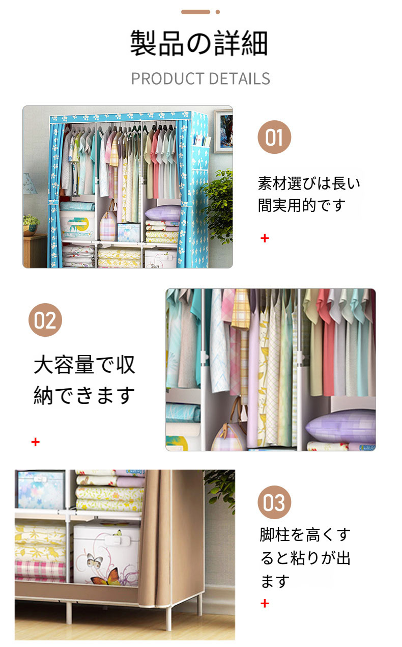 ワードローブクローゼット メタルラック ワインレッド コーヒー グレー オフホワイト ブルー ピンク