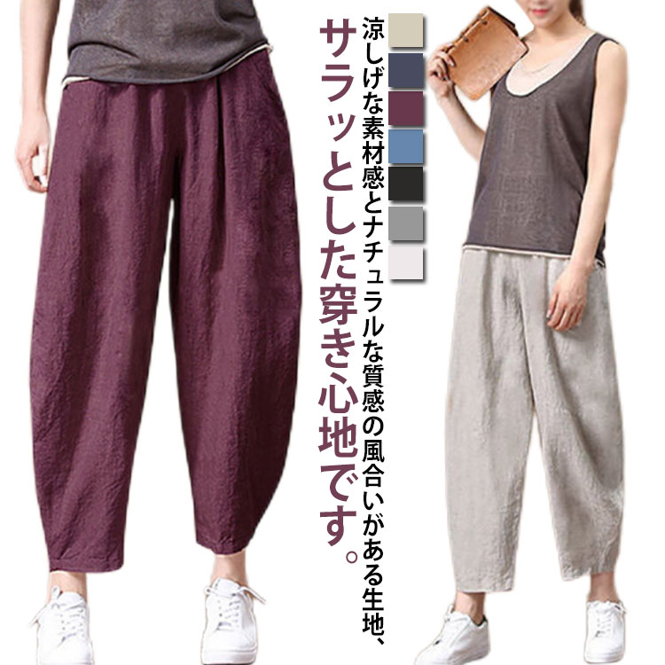 クロップドパンツ リネンパンツ ロング レディースファッション 超目玉商品 グレー キナリ ブラック ワインレッド ブルー ネイビー S M L XL 2XL 3XL 4XL 5XL