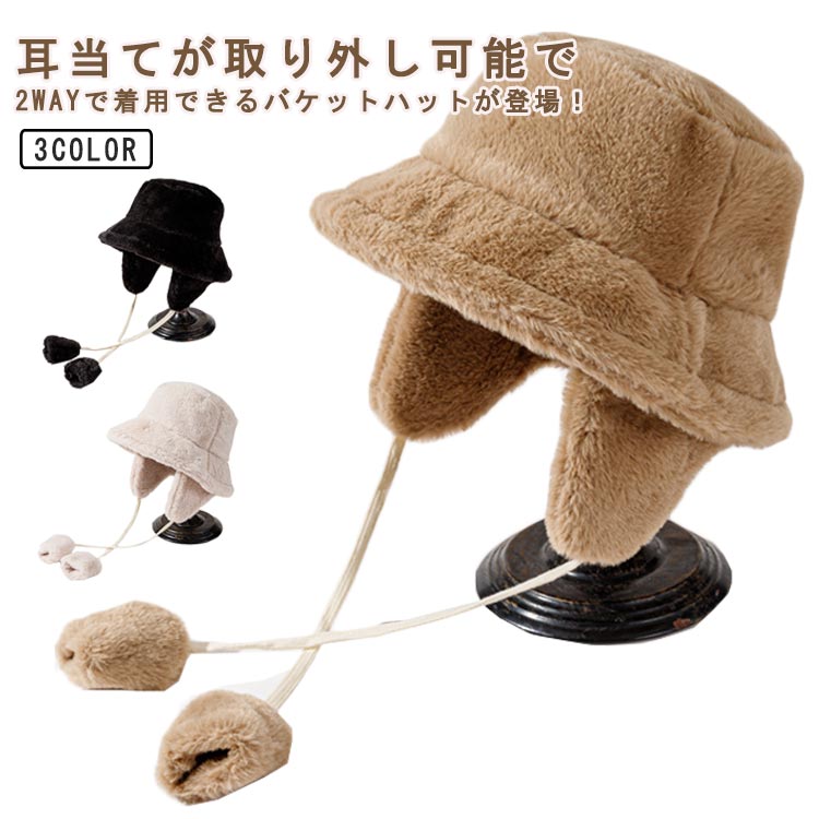 バケットハット 2WAY 耳当て付き バッグ 小物 ブランド雑貨 新登場! ベージュ ブラウン ブラック