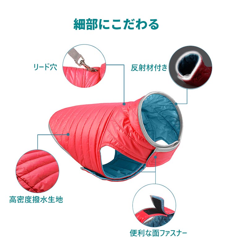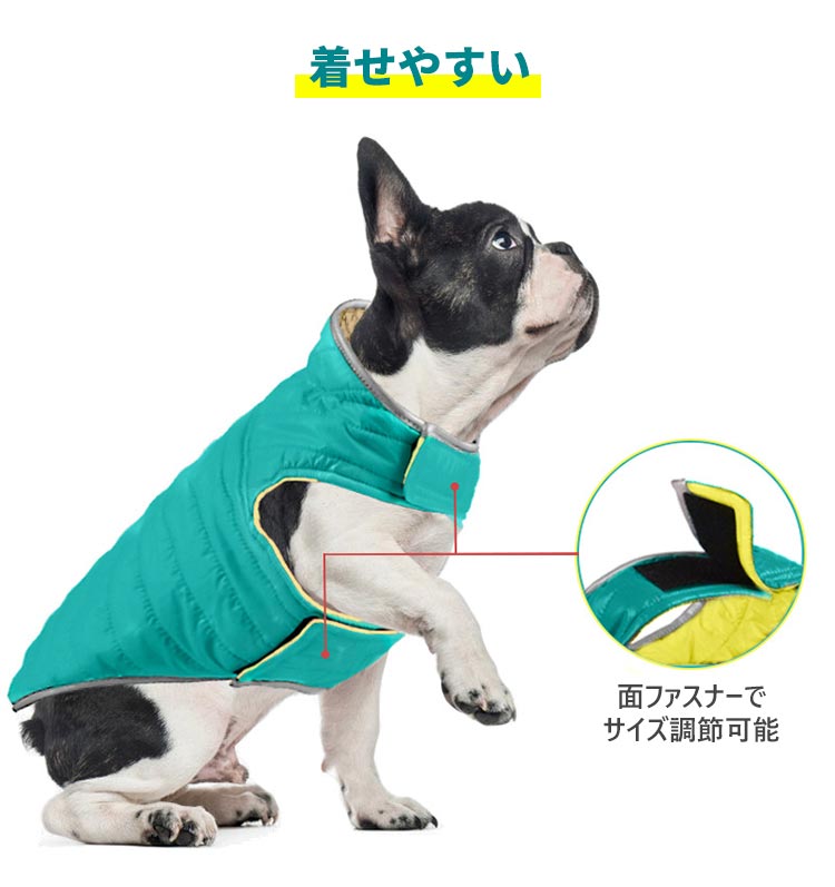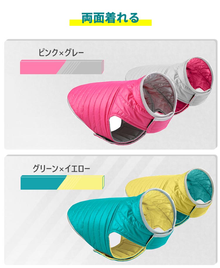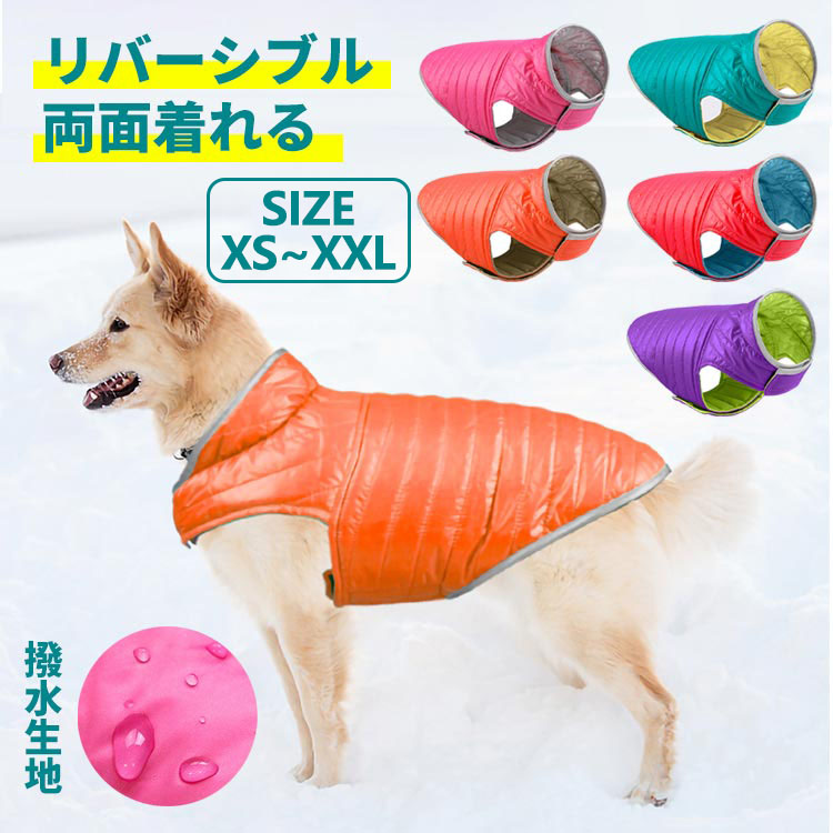 犬服 小 中 大型犬 洋服 アウター ベスト ジャケット 秋 冬 防寒 ダウン風 中綿 両面着れる 裏返し リバーシブル コート ドッグウェア 撥水 防風 あったか 暖かい ルームウェア 保温