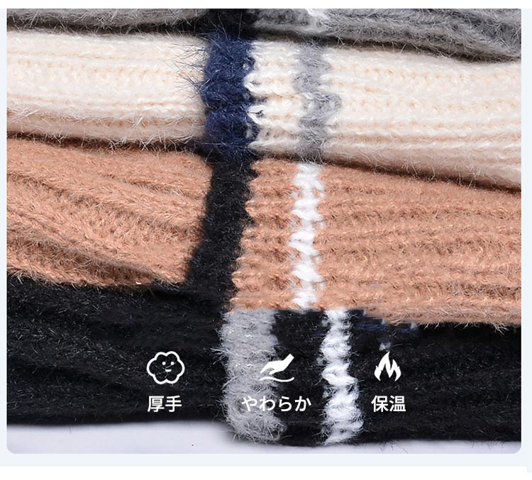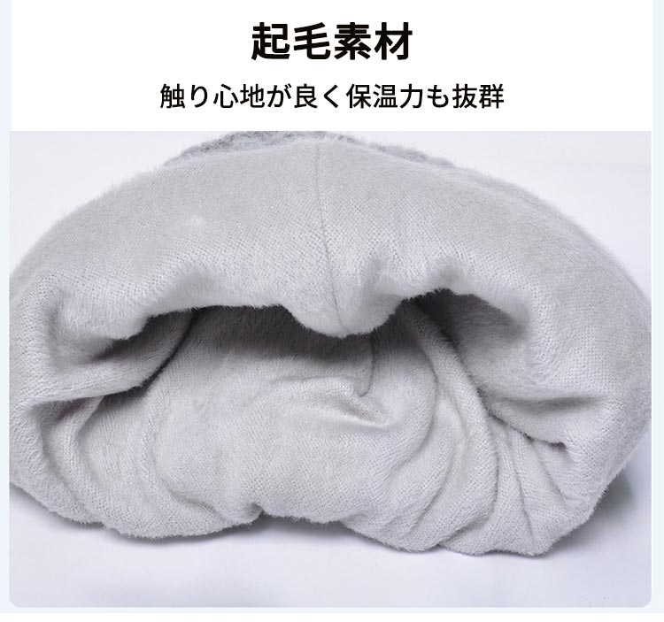 ニット帽の内側に、ふわんふわんの裏起毛を使用しました ぽかぽかと暖かく、一度かぶったら手放せない肌触り