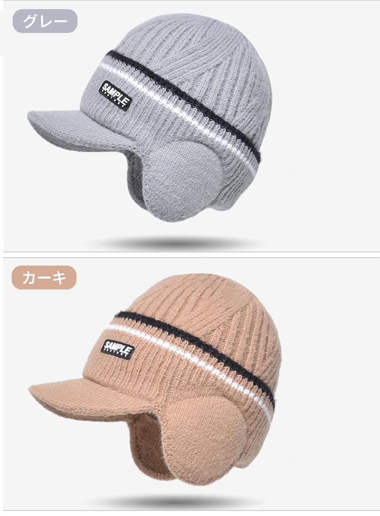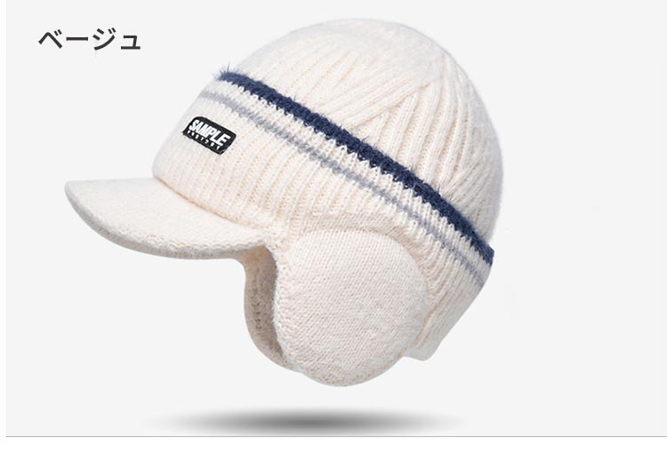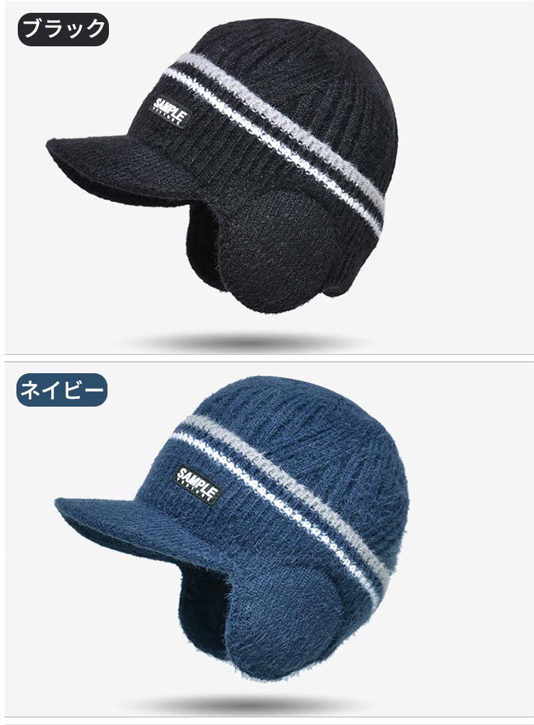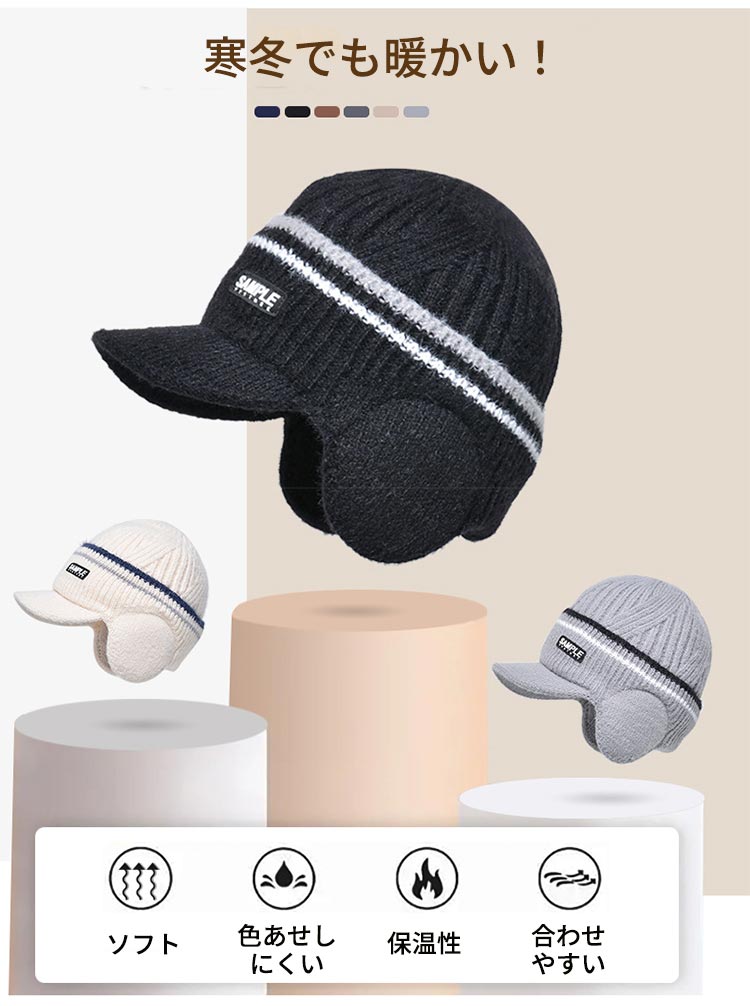 ニット帽 メンズ 耳あて 冬 ニットキャップ つば付き 帽子 裏起毛 ニット イヤーマフ 秋冬 小顔効果 防寒キャップ 毛糸帽子 厚手 あったか 暖かい 防風 スノー アウトドア ゴルフ 保温