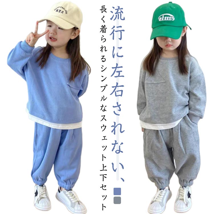 スウェット上下セット 子ども服 セット キッズ トップス パーカー 続々入荷中 ブルーセット グレーセット 90 100 110 120 130 140 150