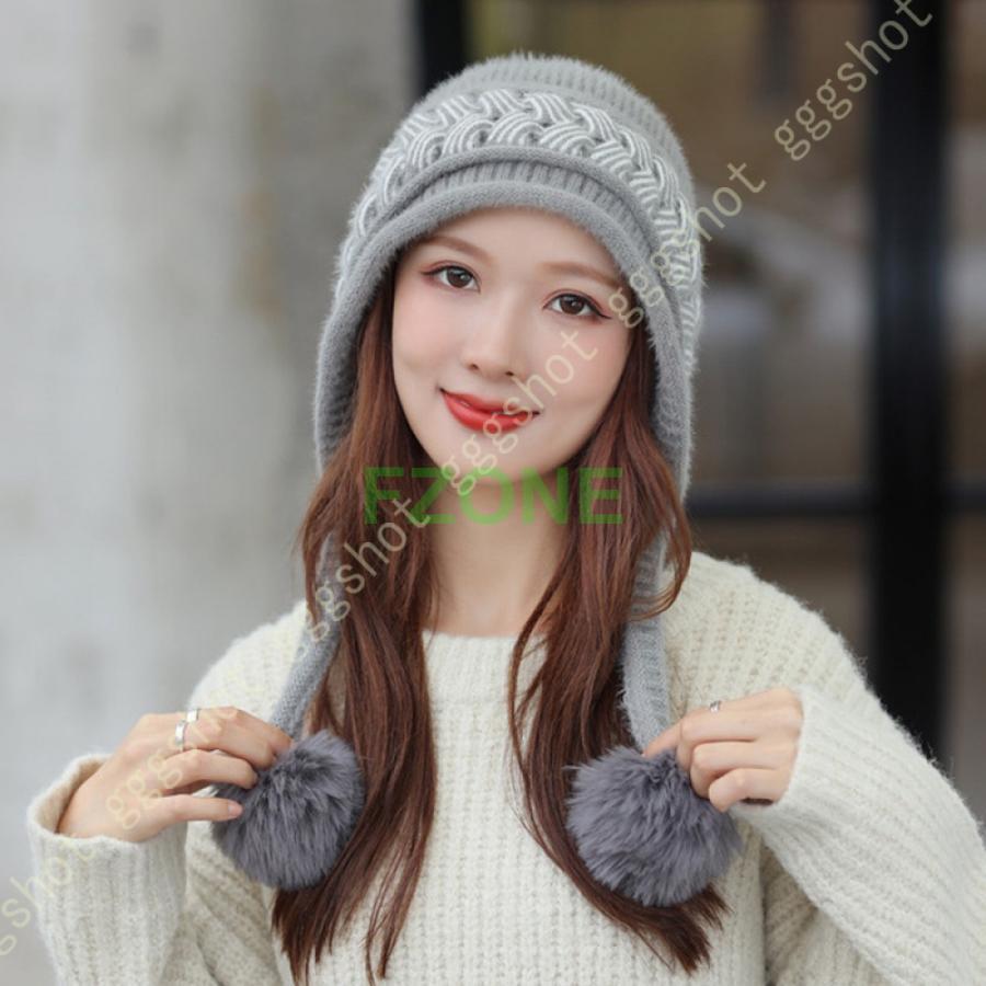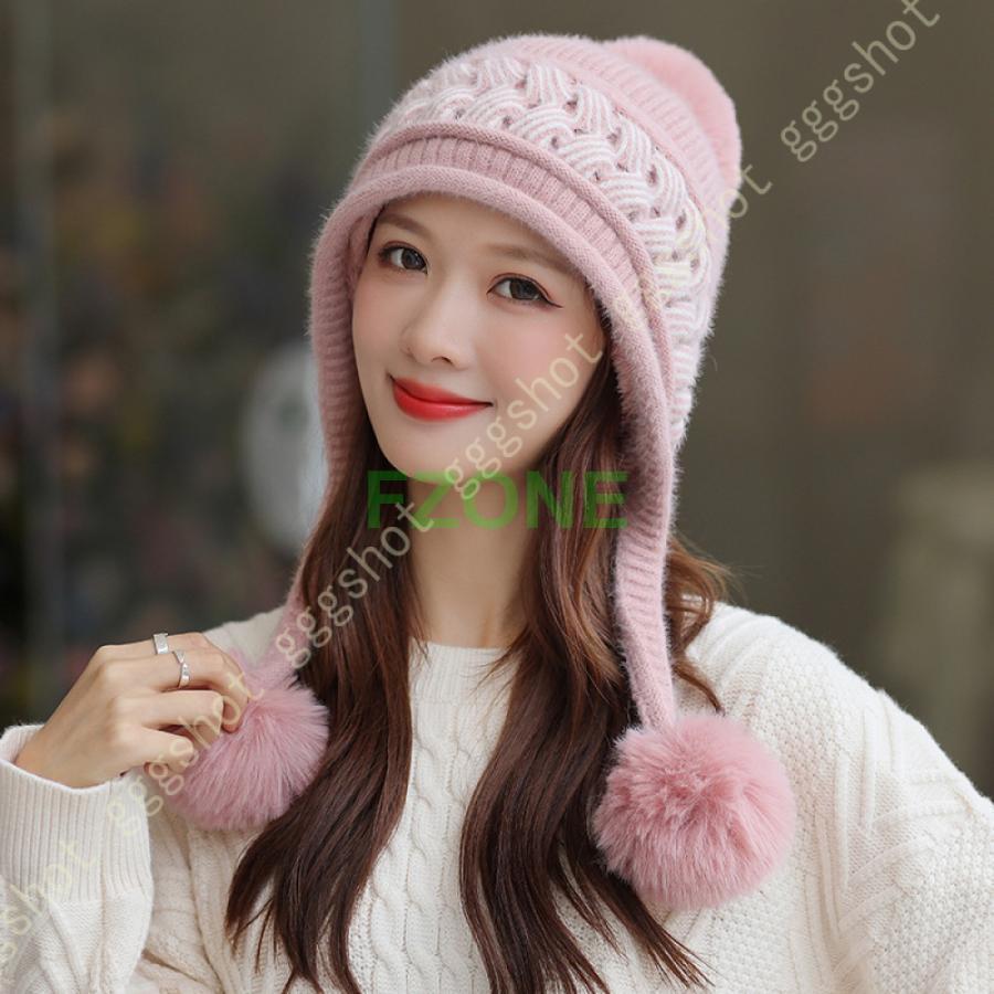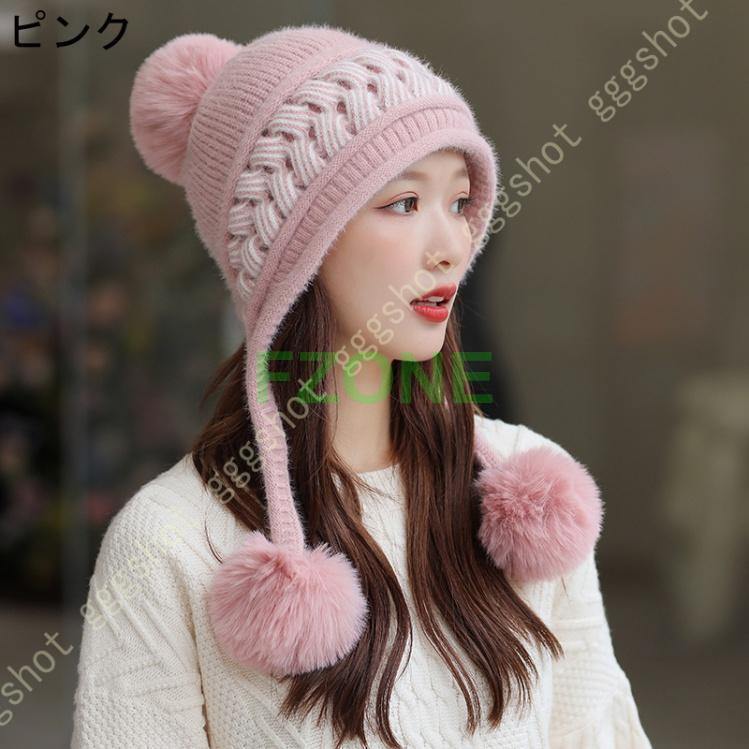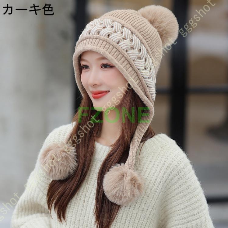 ニット帽 レディース キャップ 耳付き 帽子 レディース帽子 キャップ 続々入荷中 ベージュ ピンク グレー ブラック カーキ色 ホワイト