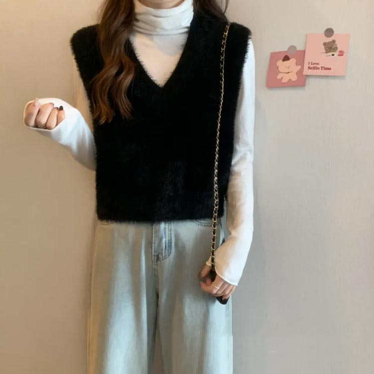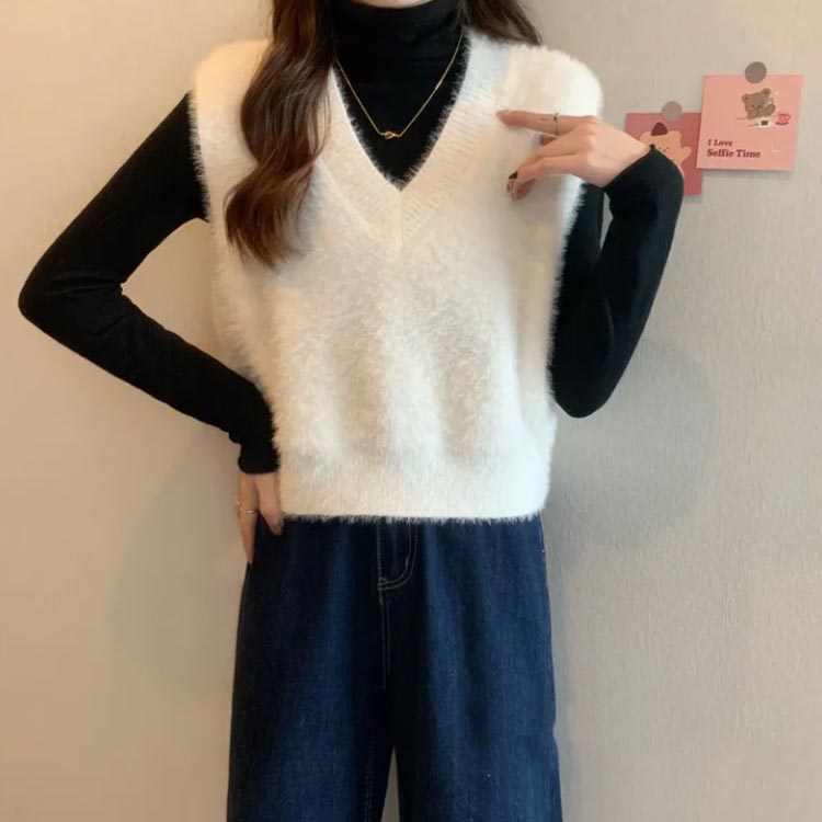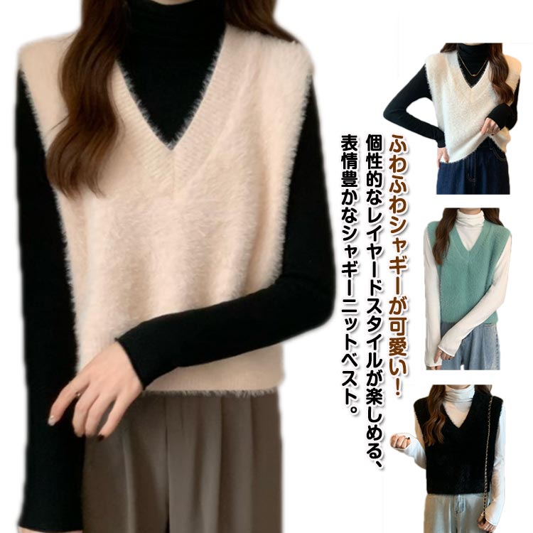 シャギーニットベスト あったか ショー トップス ベスト 早い者勝ち ホワイト グリーン ピンク ブラック コーヒー ベージュ ワインレッド S M L XL