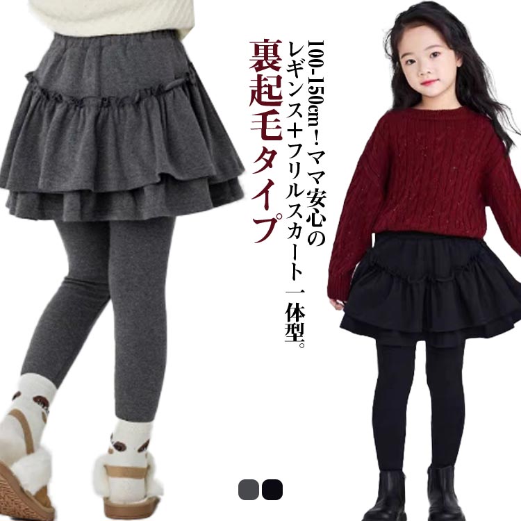 スカート付きレギンス 厚手 キッズ 裏 キッズ 靴下 タイツ スパッツ レギンス 早い者勝ち グレー ブラック 100 110 120 130 140 150