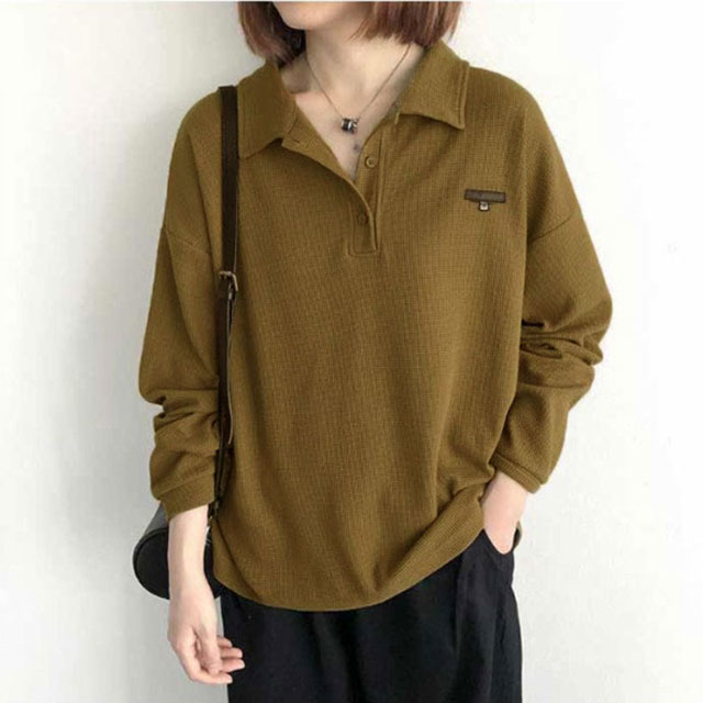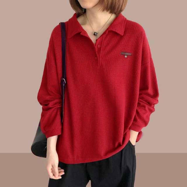 ポロシャツ レディース 長袖 tシャツ レディースファッション 新作 ブラック コーヒー ワインレッド L XL 2XL 3XL 4XL