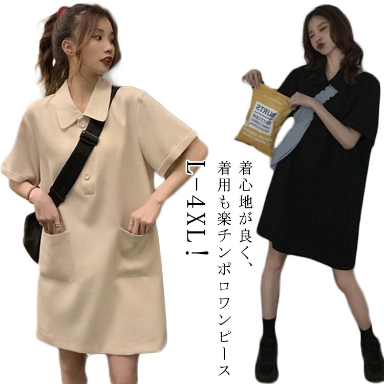 ポロワンピース ポロシャツ ワンピース レディースファッション 超目玉商品 ベージュ ブラック L XL 2XL 3XL 4XL