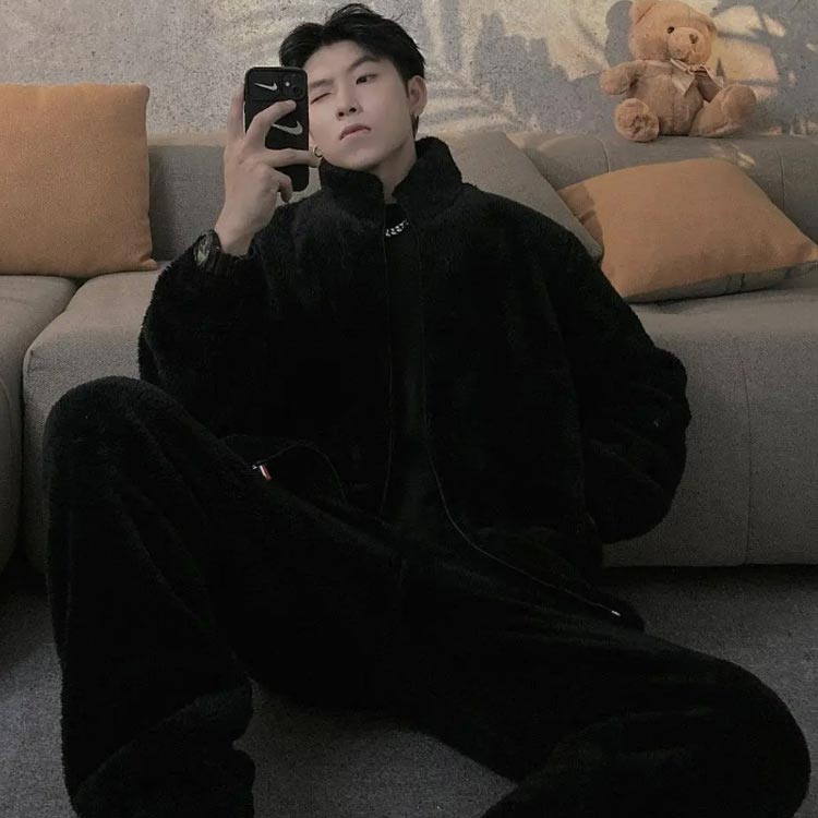 ルームウェア 冬用 メンズ ふわふわ インナー 下着 ナイトウエア 早い者勝ち ブラックセット グレーセット ブルーセット― M L XL 2XL 3XL