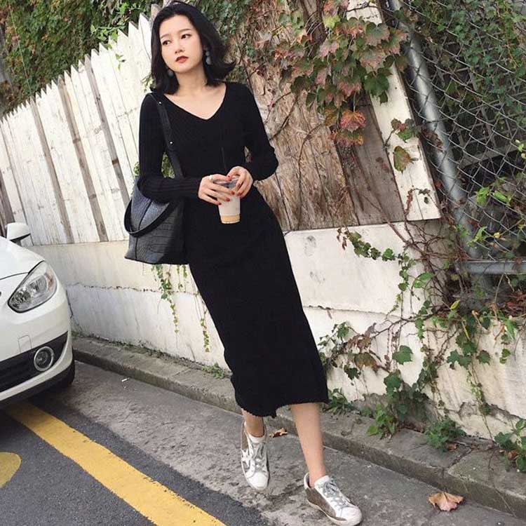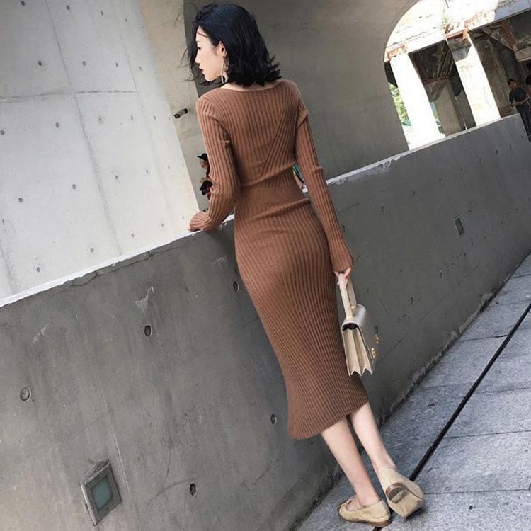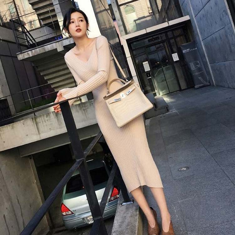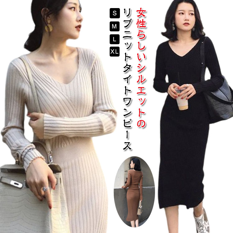 リブ ニット ワンピース 切り替え ス レディースファッション 続々登場 ベージュ ブラック キャラメル S M L XL