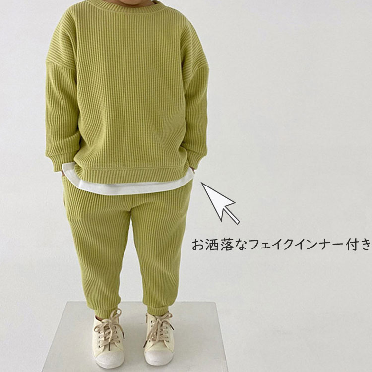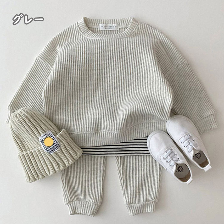ベビー服 セットアップ 2点セット ニ キッズ ベビー マタニティ 新作 グレー ピンク グリーン 73cm 80cm 90cm 100cm