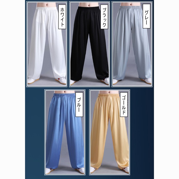 サテン 太極拳パンツ レディース メン 格闘技 武術 総合格闘技 ウェア 続々入荷中 ホワイト ブラック グレー ブルー ゴールド S M L XL XXL 3XL