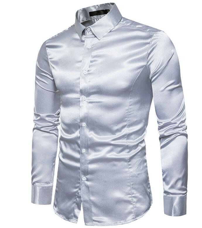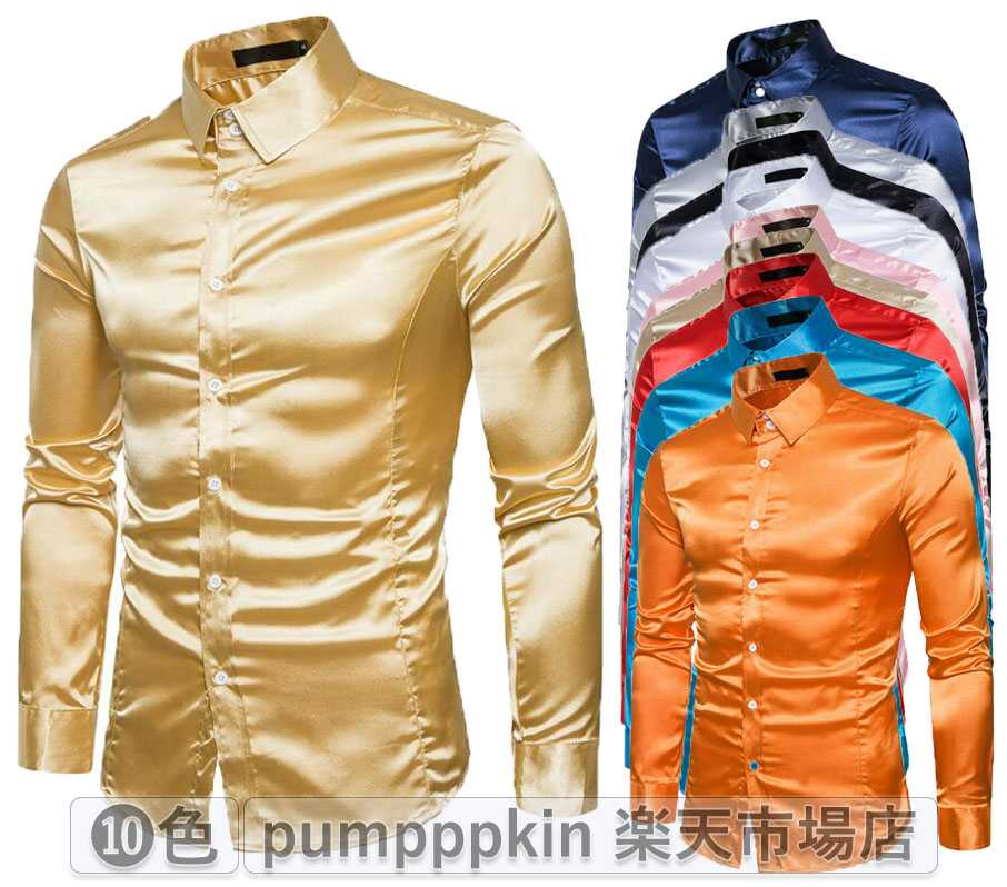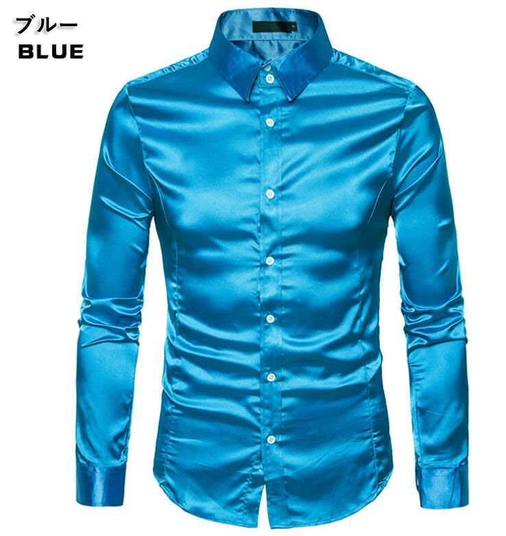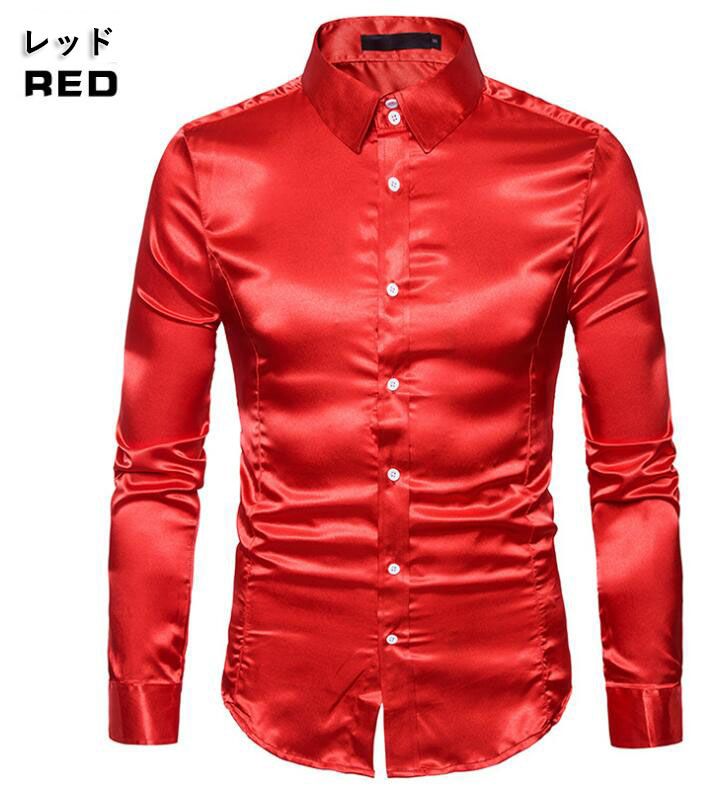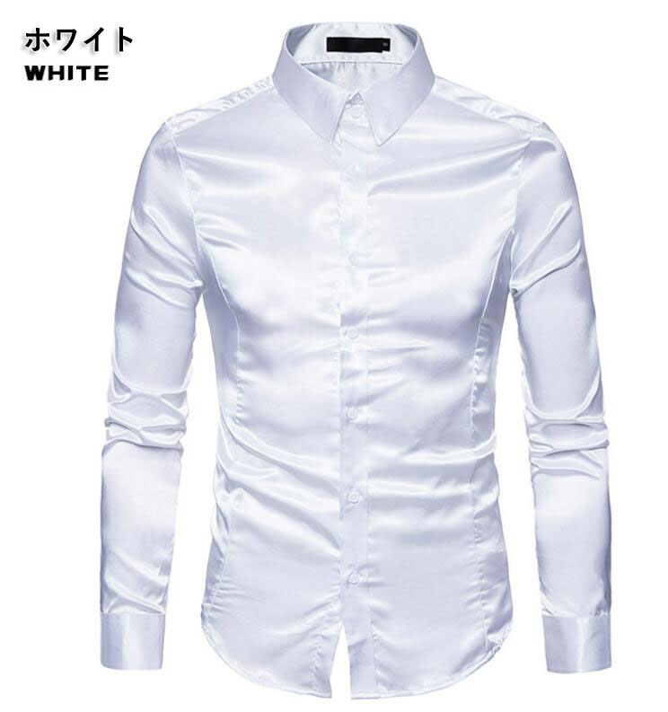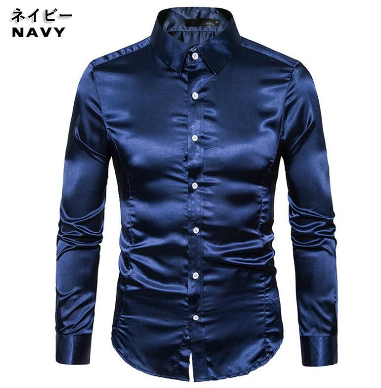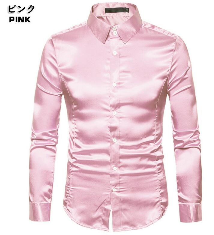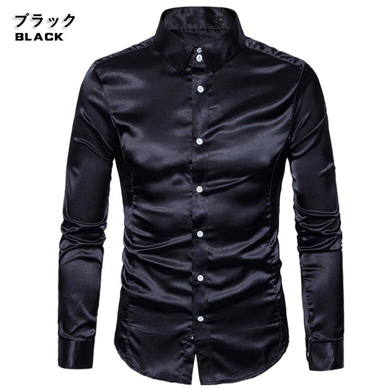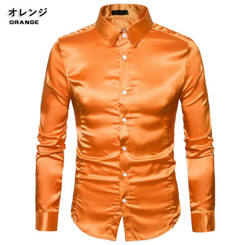 サテンシャツ メンズ 光沢感あり 長袖 トップス カジュアルシャツ 新作 ライトグレー ホワイト ブラック ネイビー ブルー オレンジ レッド ベージュ ピンク イエロー S M L XL 2XL