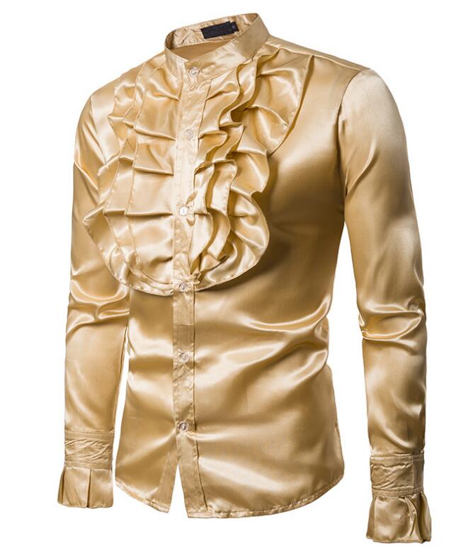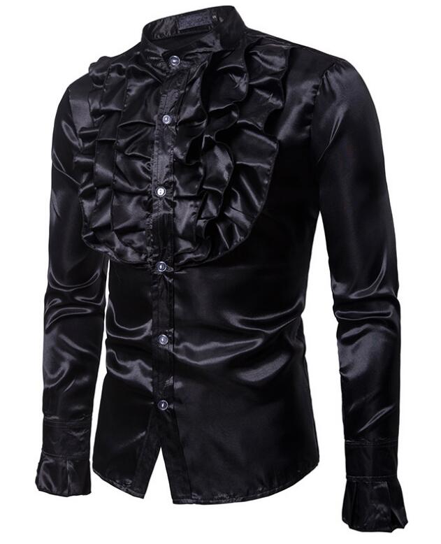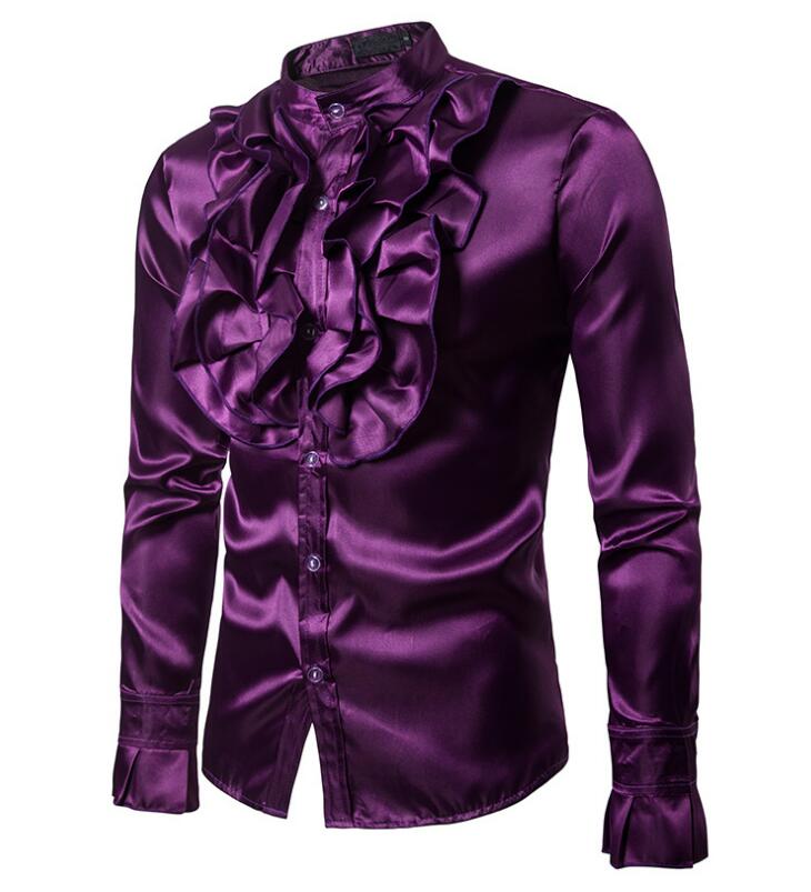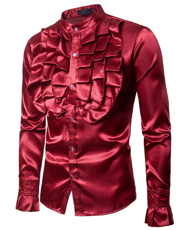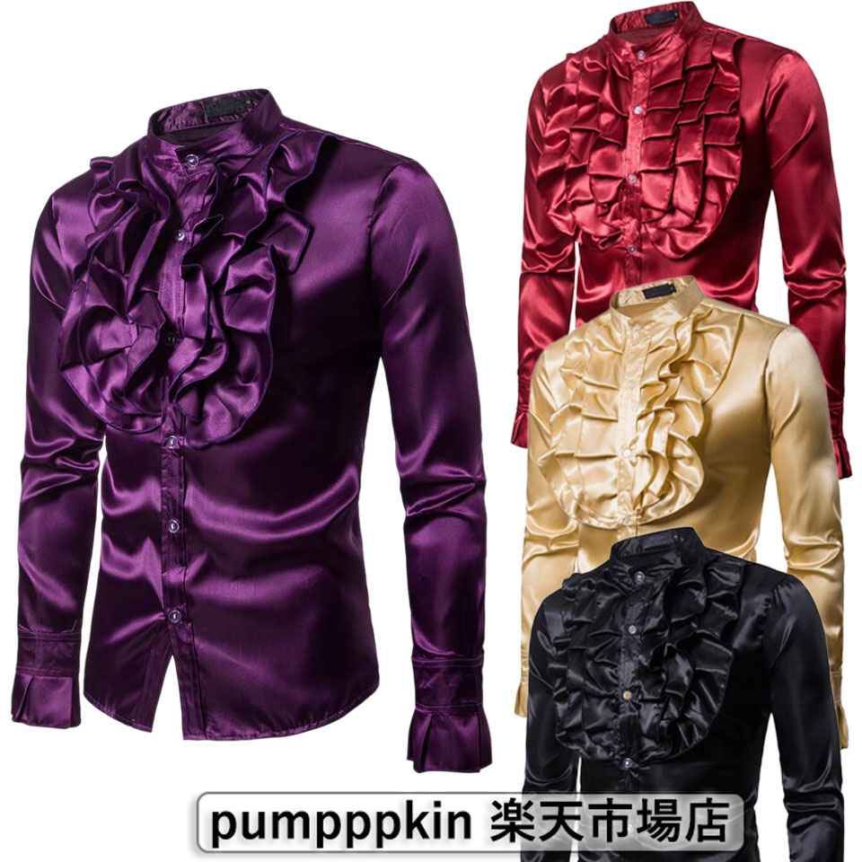 ステージ衣装 フリルシャツ メンズ 光 トップス カジュアルシャツ 早い者勝ち ブラック レッド イエロー パープル S M L XL XXL
