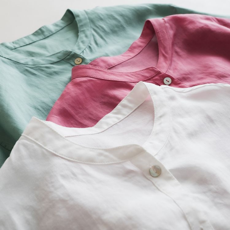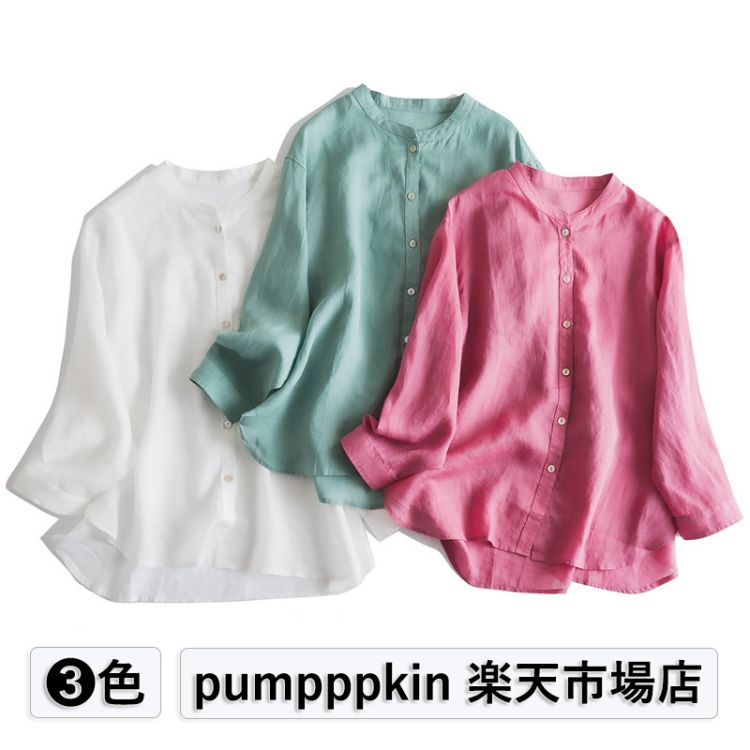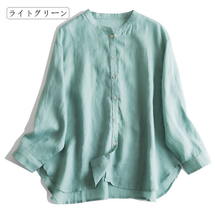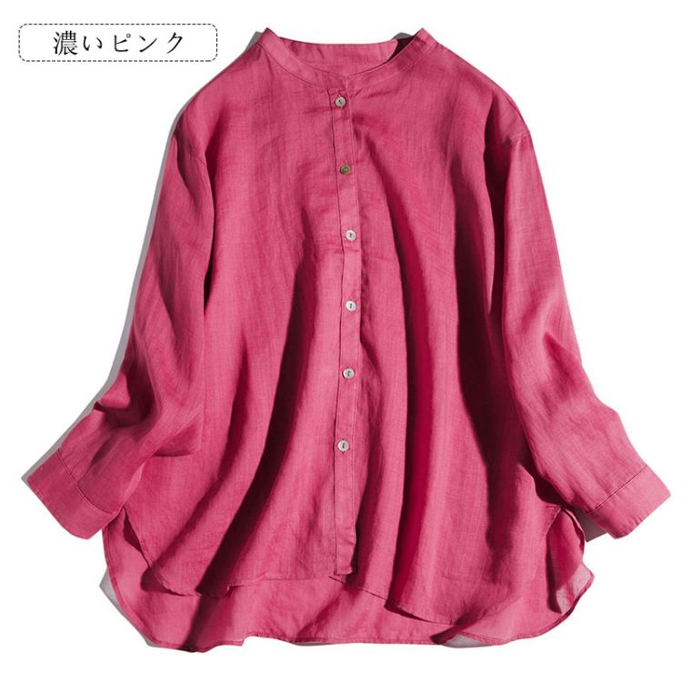 上品 リネンシャツ レディース ゆった レディースファッション 続々登場 ライトグリーン ホワイト 濃いピンク S M L