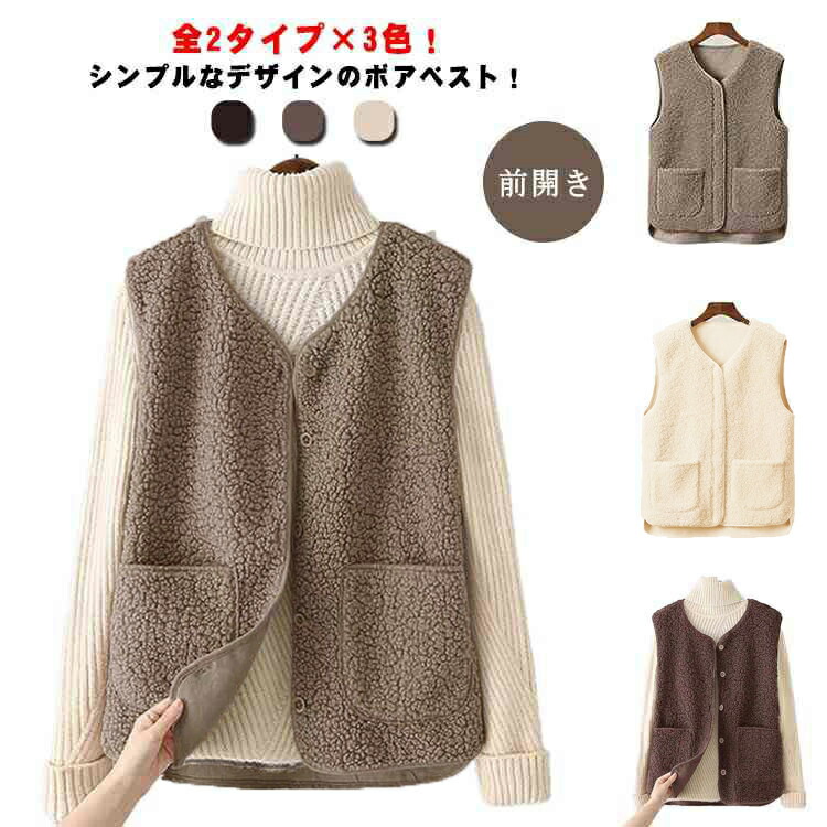 全2タイプ×3色 ベスト ボアベスト コート ジャケット 豊富 ベージュボタン式 ブラウンボタン式 モカボタン式 ベージュジッパー式 ブラウンジッパー式 モカジッパー式 S M L XL