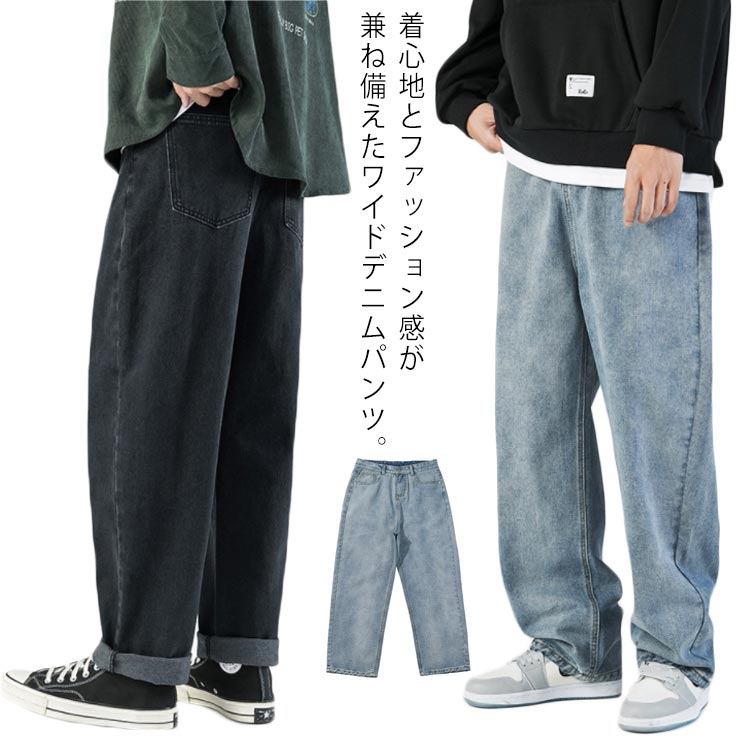 バギー ロングパンツ メンズ ワイド メンズファッション 続々登場 ブラック ブルー M L XL 2XL