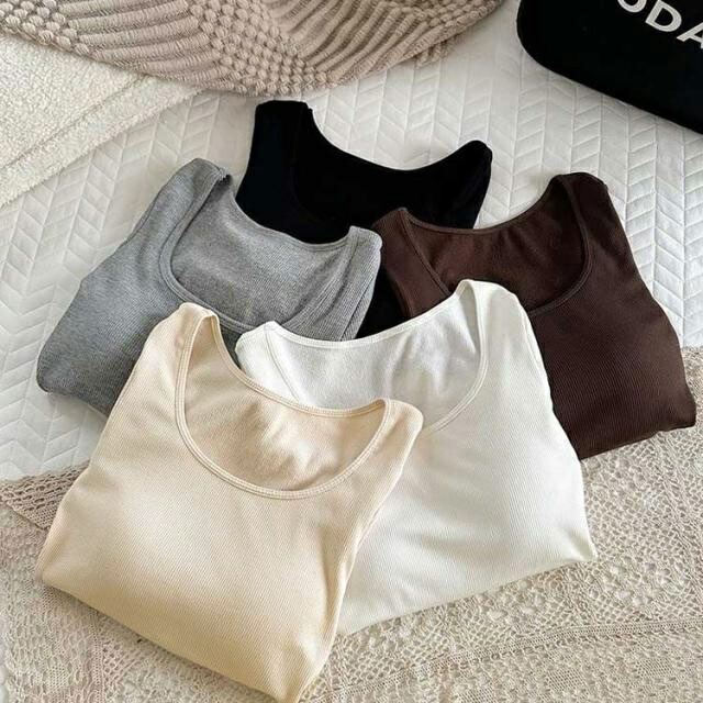 あったかインナー カップ付き リブ ト レディース インナー 下着 インナーシャツ 新登場! ホワイト ブラック ベージュ グレー コーヒー M L