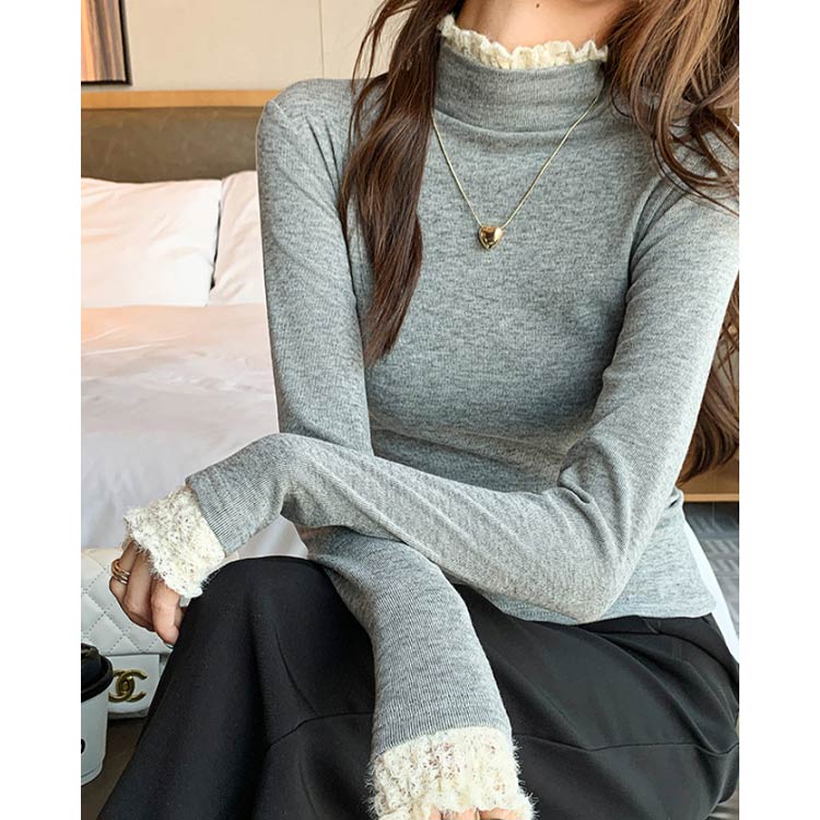インナーシャツ カットソー 重ね着風 トップス Tシャツ カットソー 人気 ブラック アイボリー ライトグレー ダークグレー コーヒー M L XL 2XL