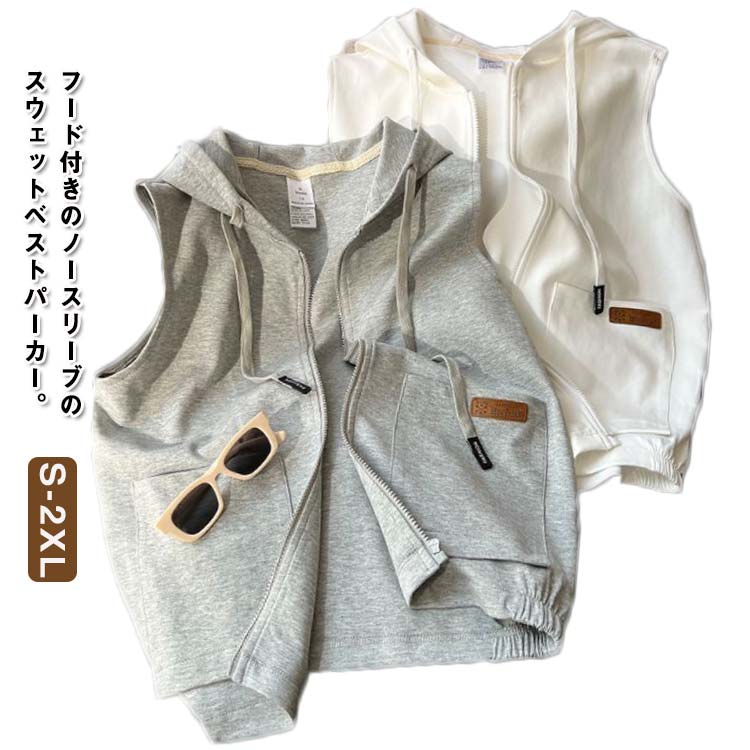 ベスト パーカー レディース 春 秋 レディースファッション 早い者勝ち グレー ホワイト S M L XL 2XL