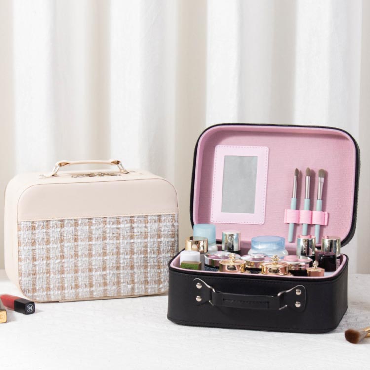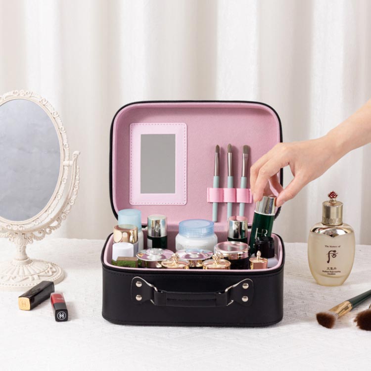 鏡付き コスメポーチ メイクバック 化 ブルー(S) ベージュ(S) ブラック(S) ピンク(S) ブラック(L) ベージュ(L) ピンク(L) ブルー(L)