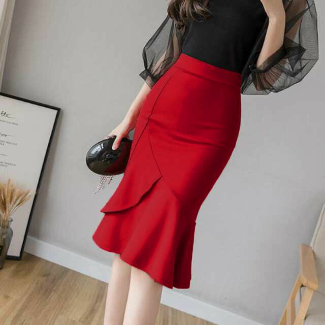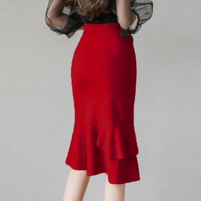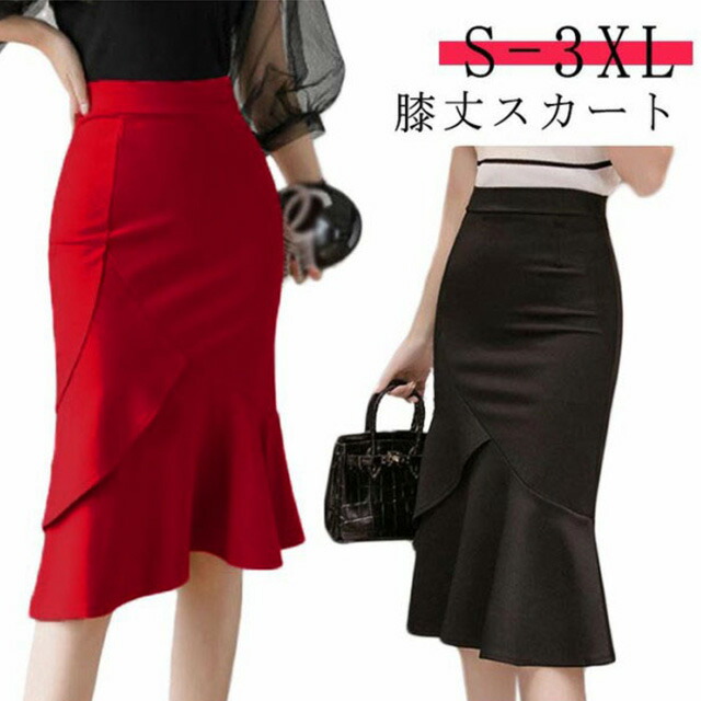 膝丈スカート レディース マーメイド レディースファッション 特集 ブラック レッド S M L XL 2XL 3XL