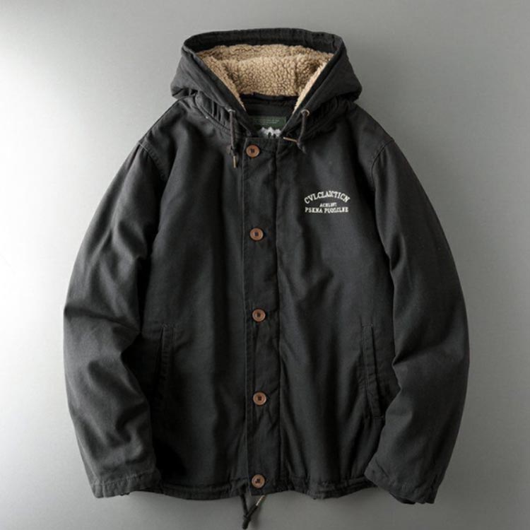 アメカジ 裏起毛 メンズ アウトド ツイル生地 暖か フード付き コットン 裏ボア ジャケット アウター ボタン 秋冬 ゆったり 厚手