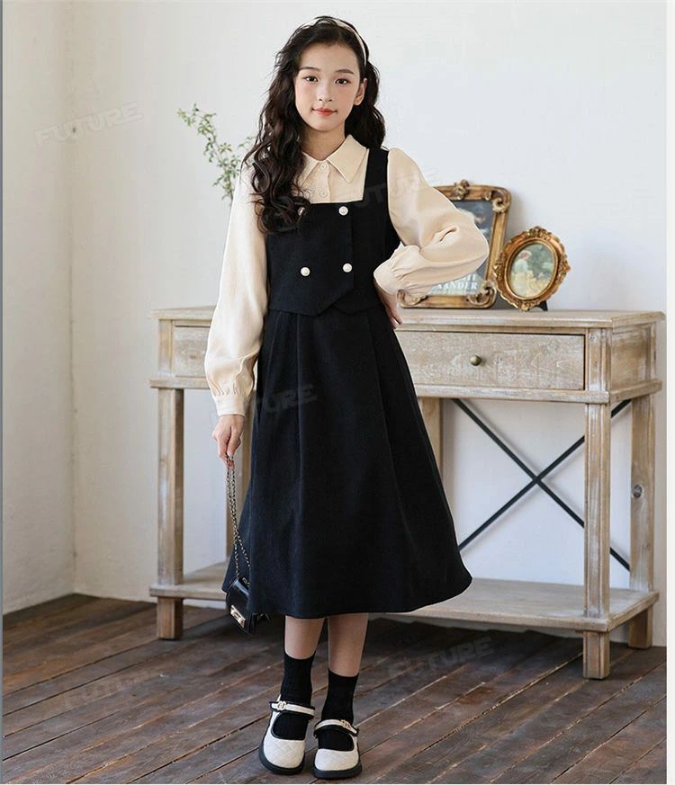 キッズ シンプル ワンピース 中学生 ピアノ発表会 165 おしゃれ 子供服 結婚式 卒業式 160 小学校女子 お受験 150 きれいめ 黒 女の子 ジュニア 小学生 ドレ 卒服