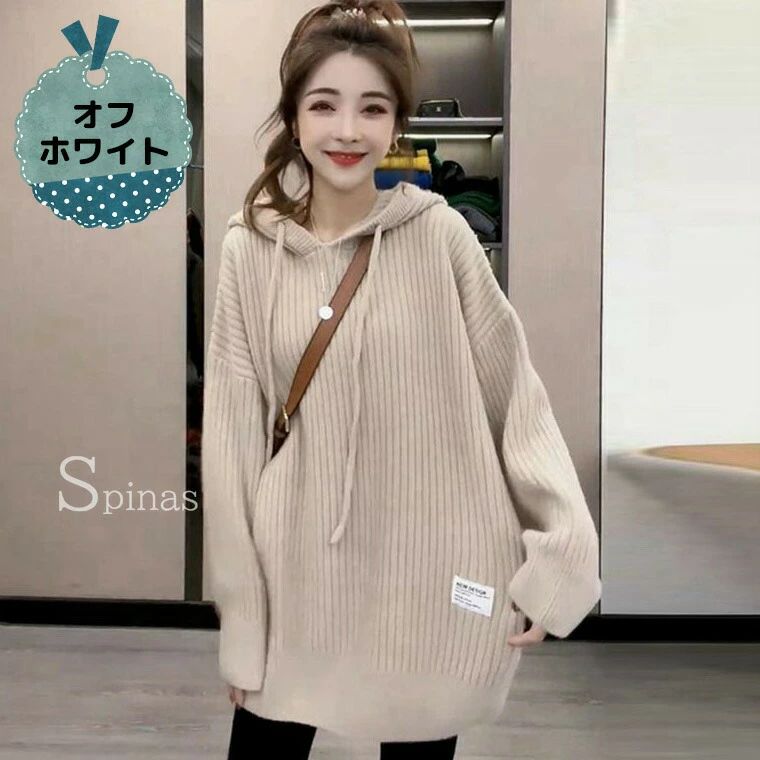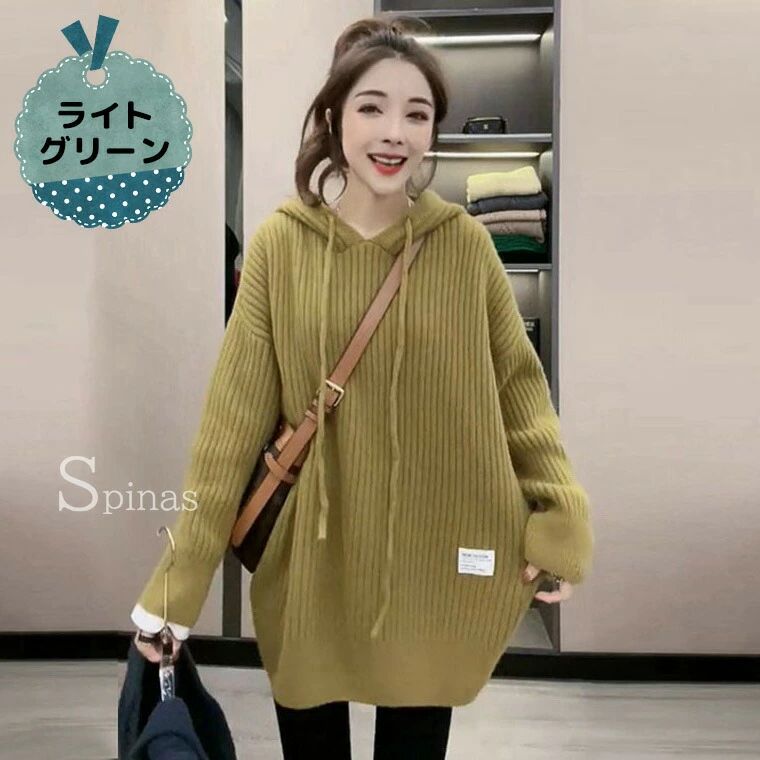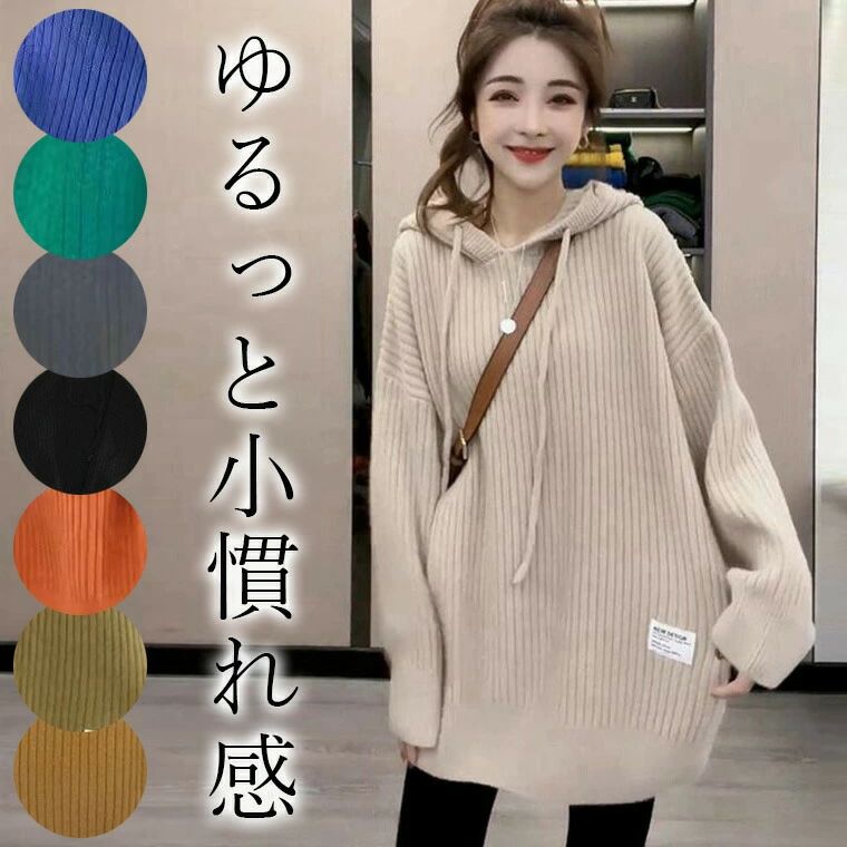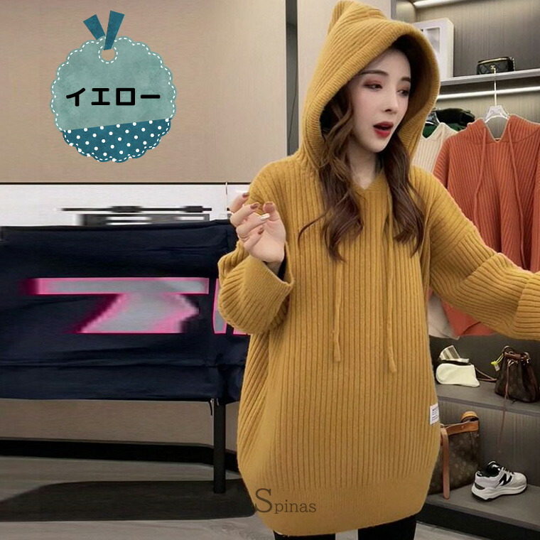 チュニック丈 ロングパーカー ニット レディースファッション 豊富 オレンジ イエロー ブラック ライトグリーン オフホワイト グレー グリーン ブルー S M L XL 2XL 3XL