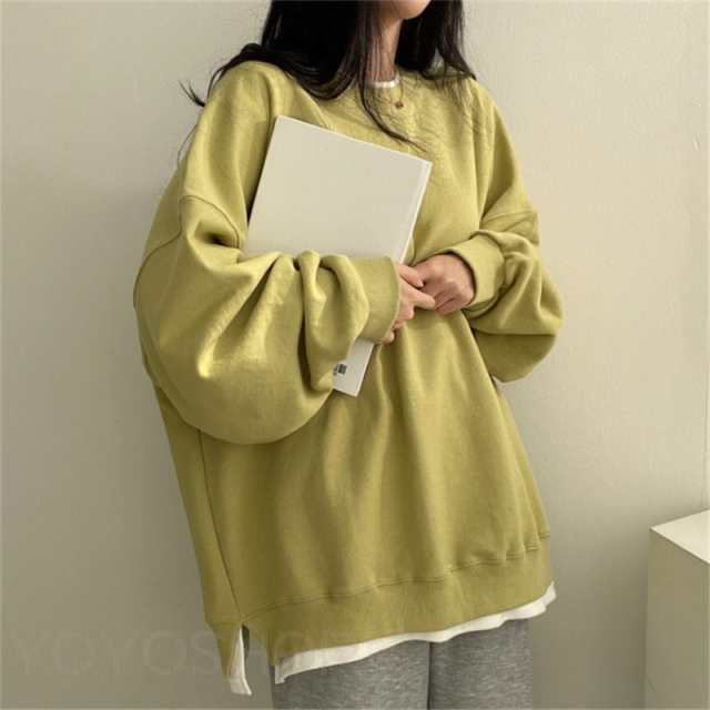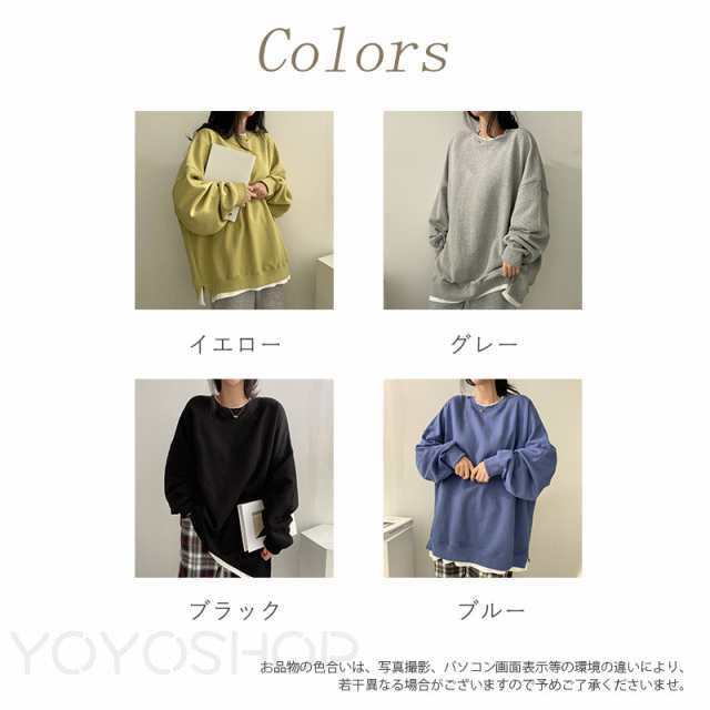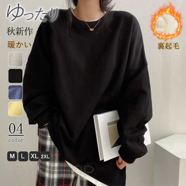 レディース 裏起毛 スウェット フェイ レディースファッション 人気 イエロー グレー ブラック ブルー M L XL 2XL