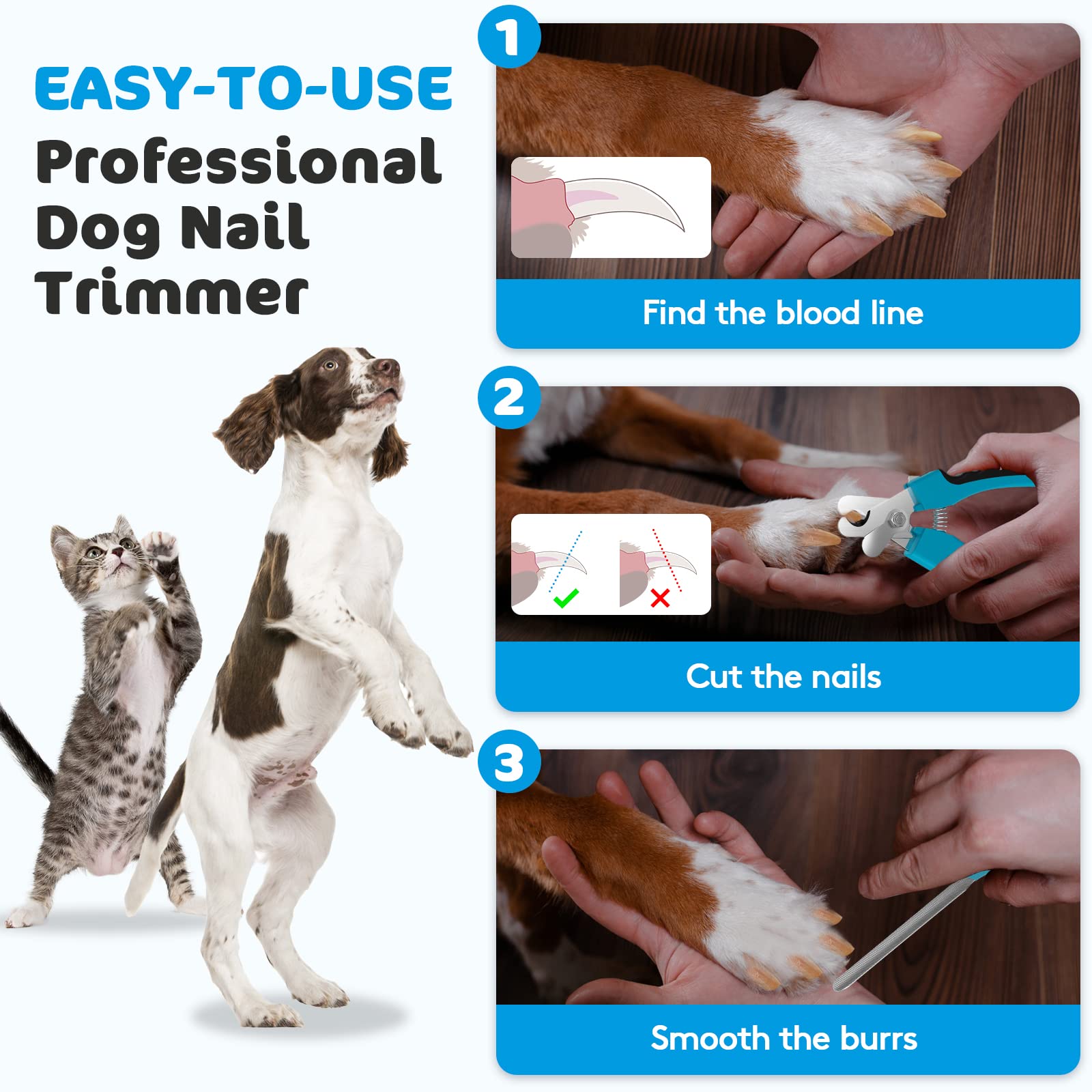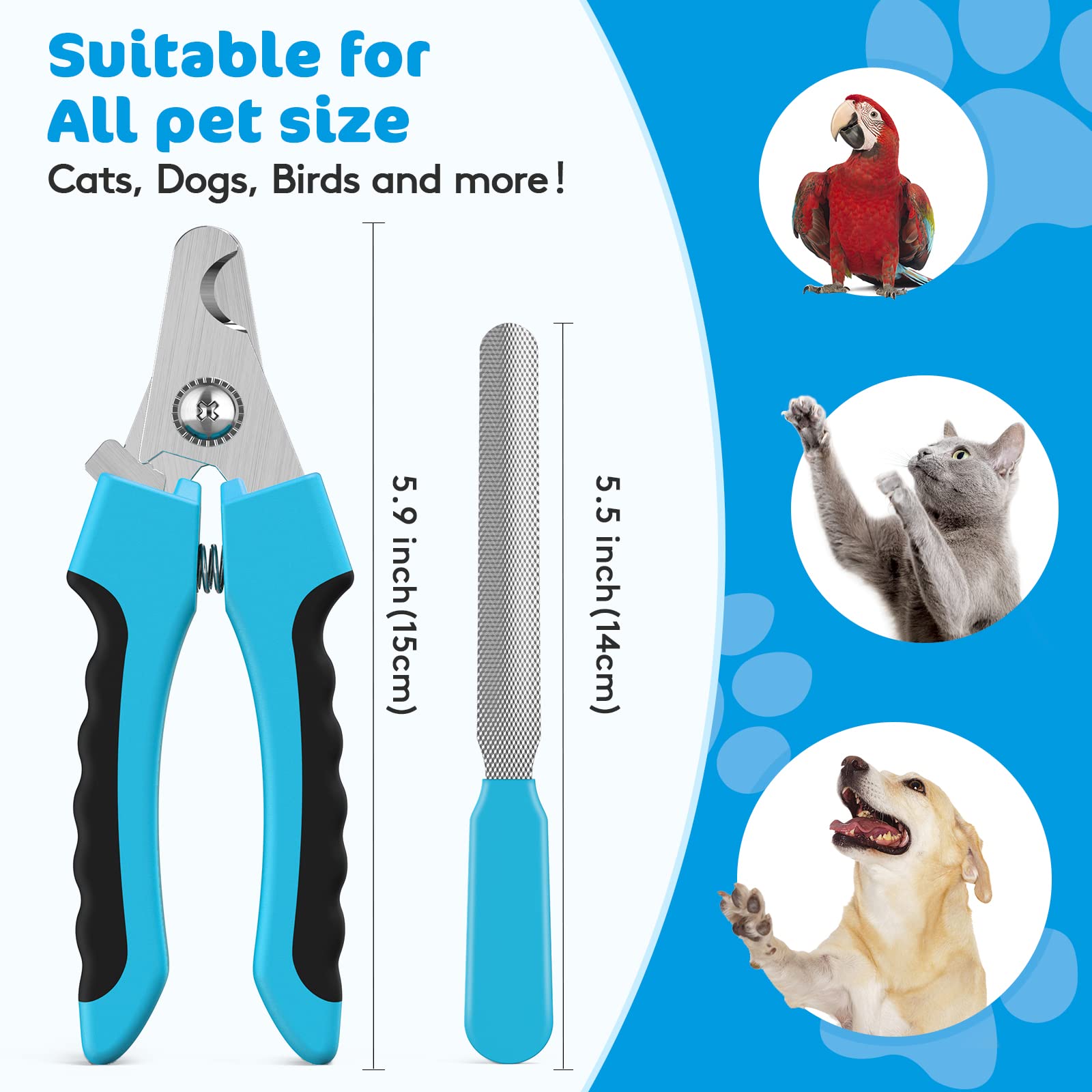 犬用爪切り 大型犬用 クイックセンサー付き カミソリの鋭い刃 ペット爪切り 安全ガードと犬の爪やすり付き グルーミング用 犬用高耐久猫用爪トリマー