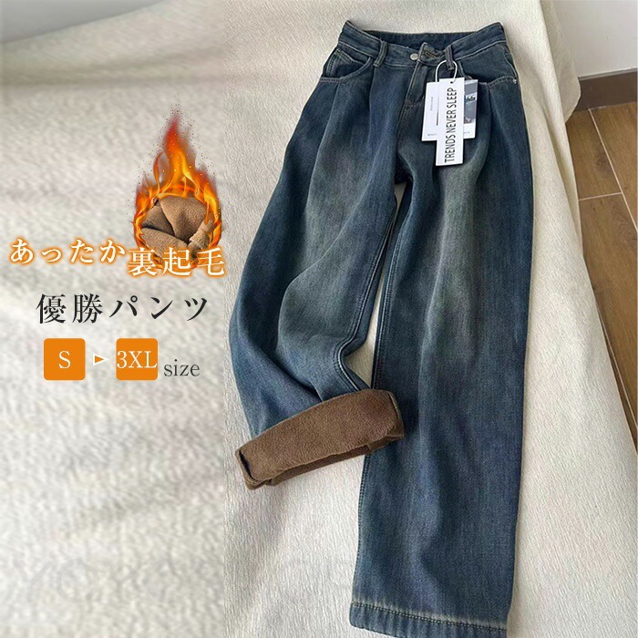 裏起毛 ワイドパンツ デニム パンツ レディースファッション 超目玉商品 S M L XL 2XL 3XL