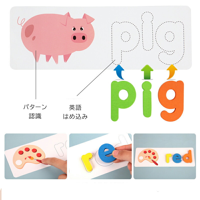 木のおもちゃ 英語はめこみ 型はめ 積