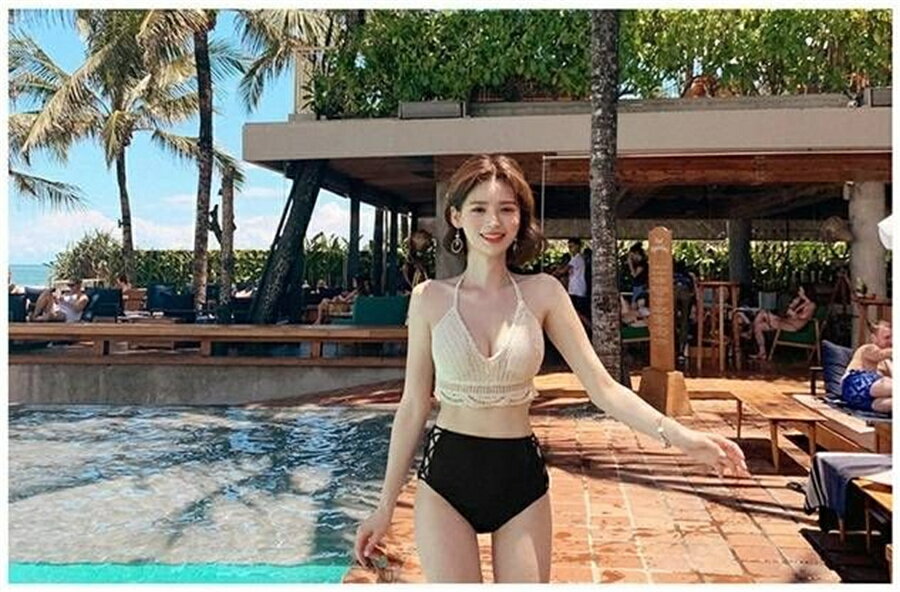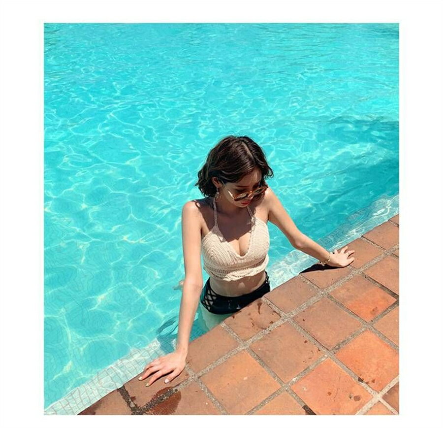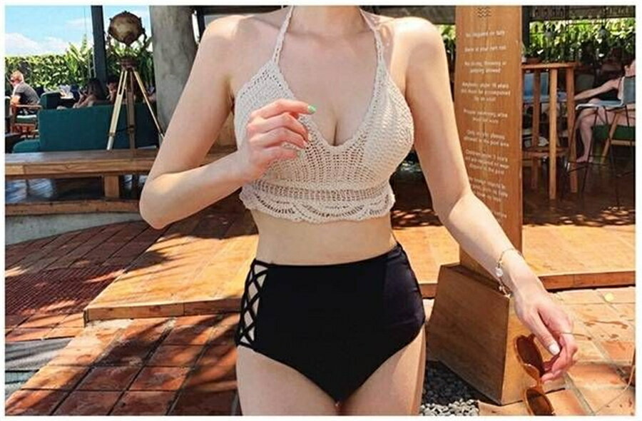 水着 ビキニ レディース 女の子 ニッ レディースファッション 早い者勝ち M L XL ベージュ+ブラック ホワイト+グリーン
