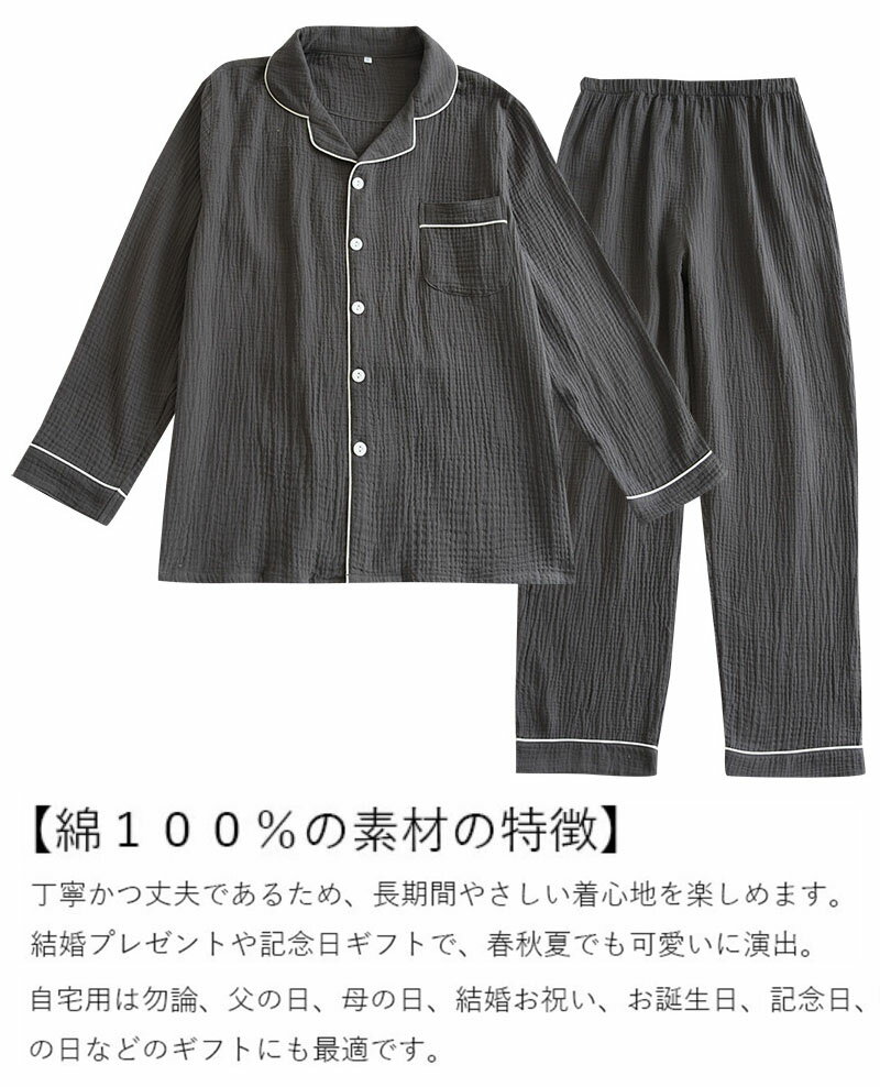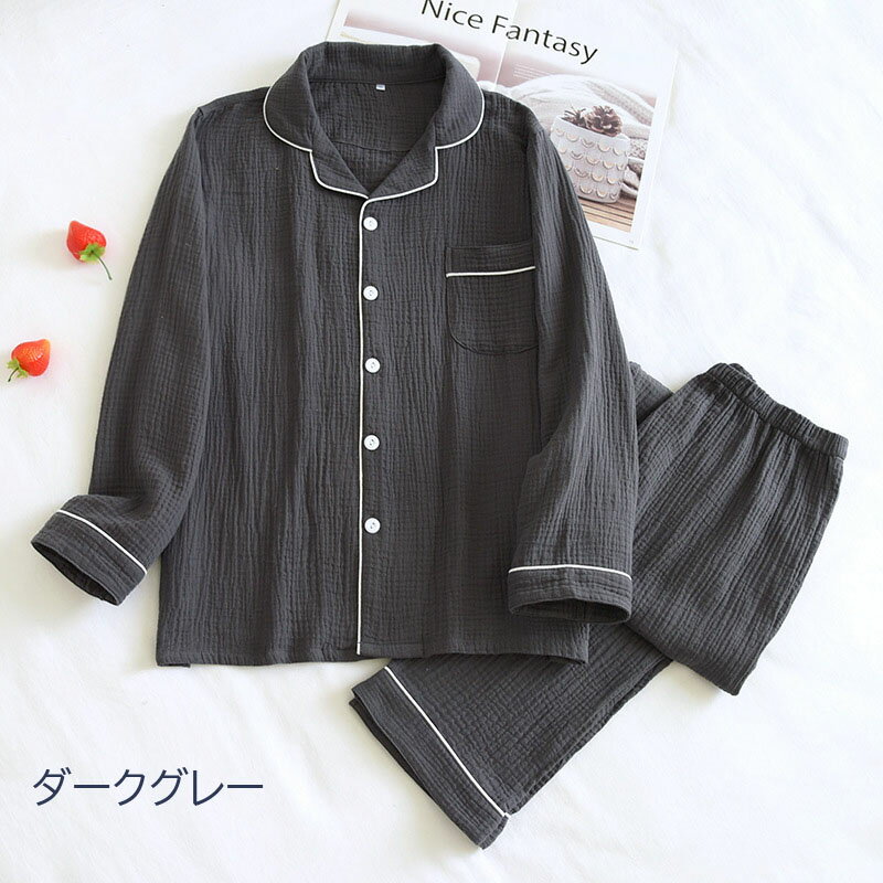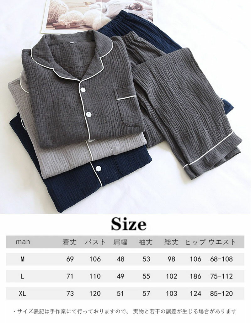 ダブルガーゼ パジャマ メンズ ルーム インナー 下着 ナイトウエア 早い者勝ち ネイビー ライトグレー ダークグレー M L 2L/XL