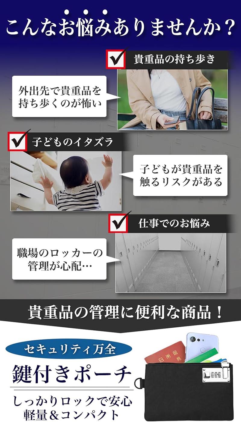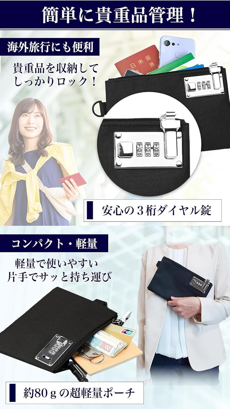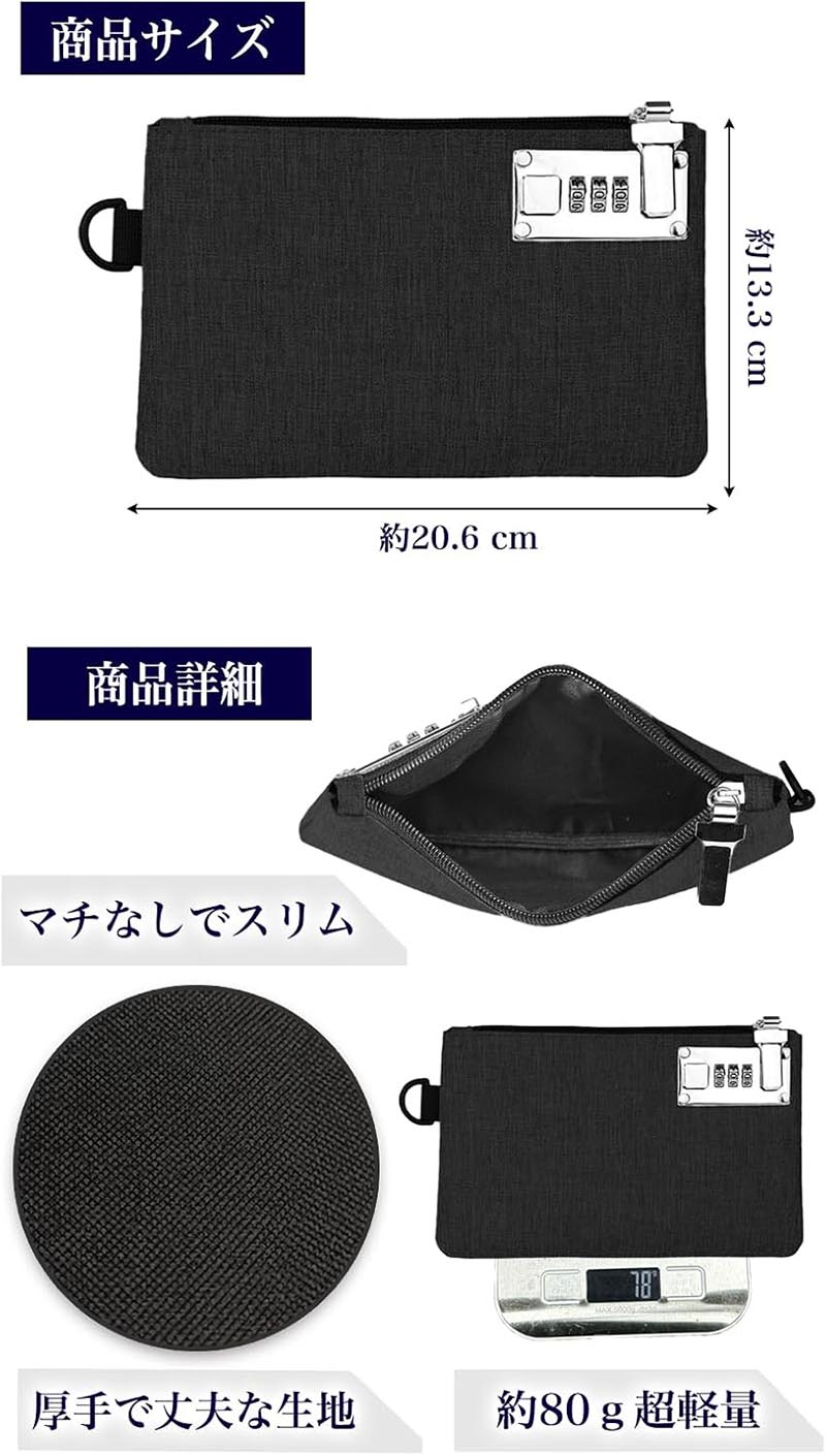 鍵付き ポーチ 貴重品入れ 通帳入れ バッグ 男女兼用バッグ その他 早い者勝ち ブラック グレー