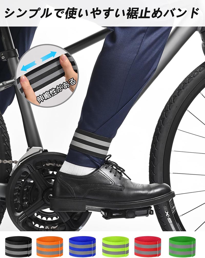 裾止めバンド 自転車 反射バンド ラン ブラック ピンク グリーン ブルー オレンジ色 レッド グリーンB ブルーB